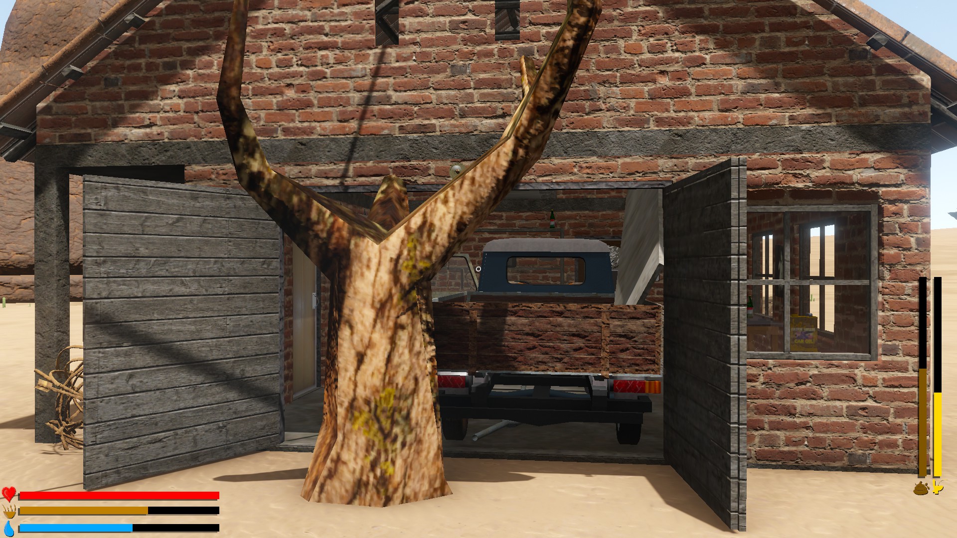 Random generated open world semi-post apocalyptic survival car driving game.