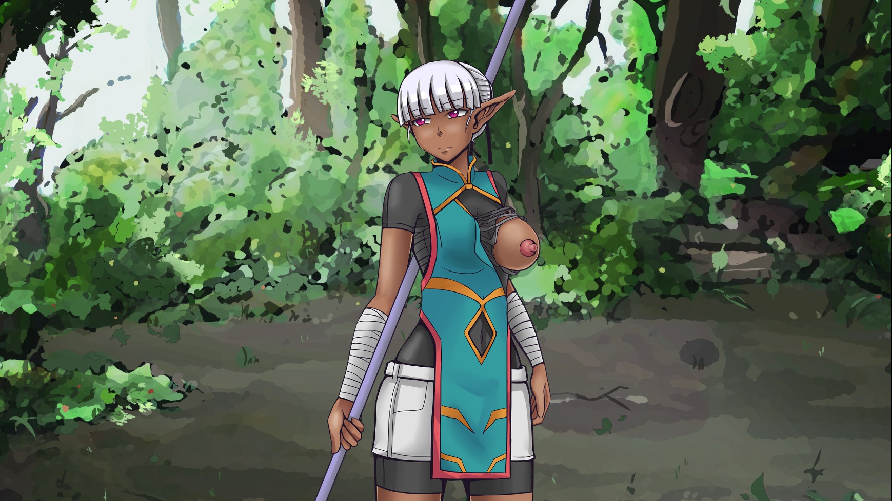 Fight slimes with a dark elf, accidentally hypnotize her, and have sexy encounters in an erotic visual novel!