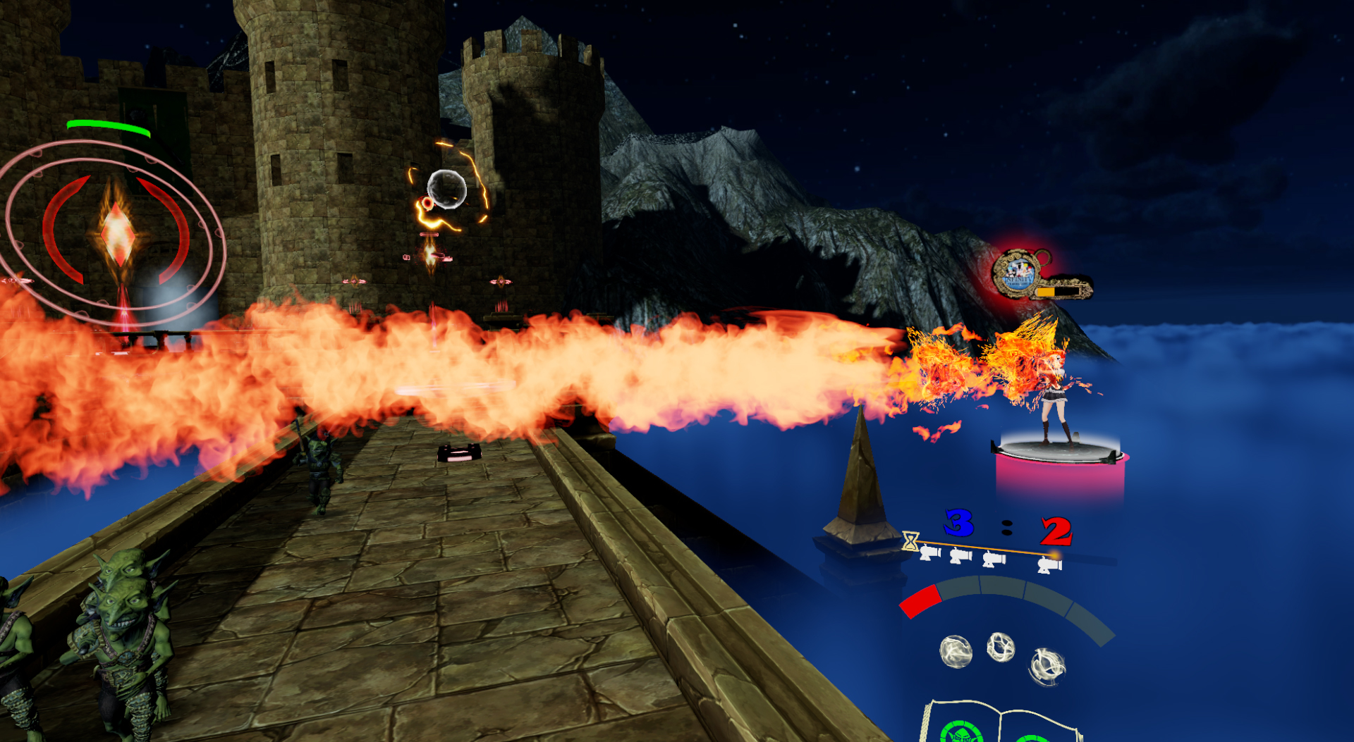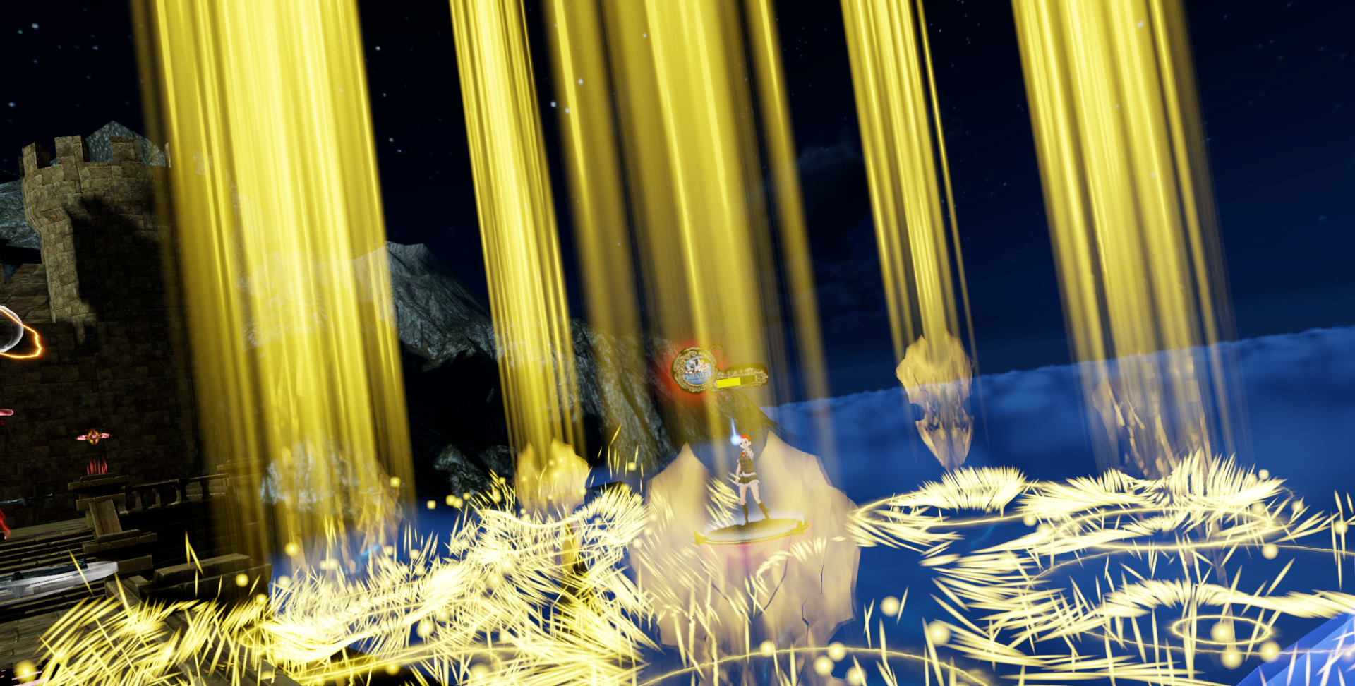 召唤X型交叉火柱灼烧敌人,距离很短,但可以同时摧毁来自敌方的能量球攻击。