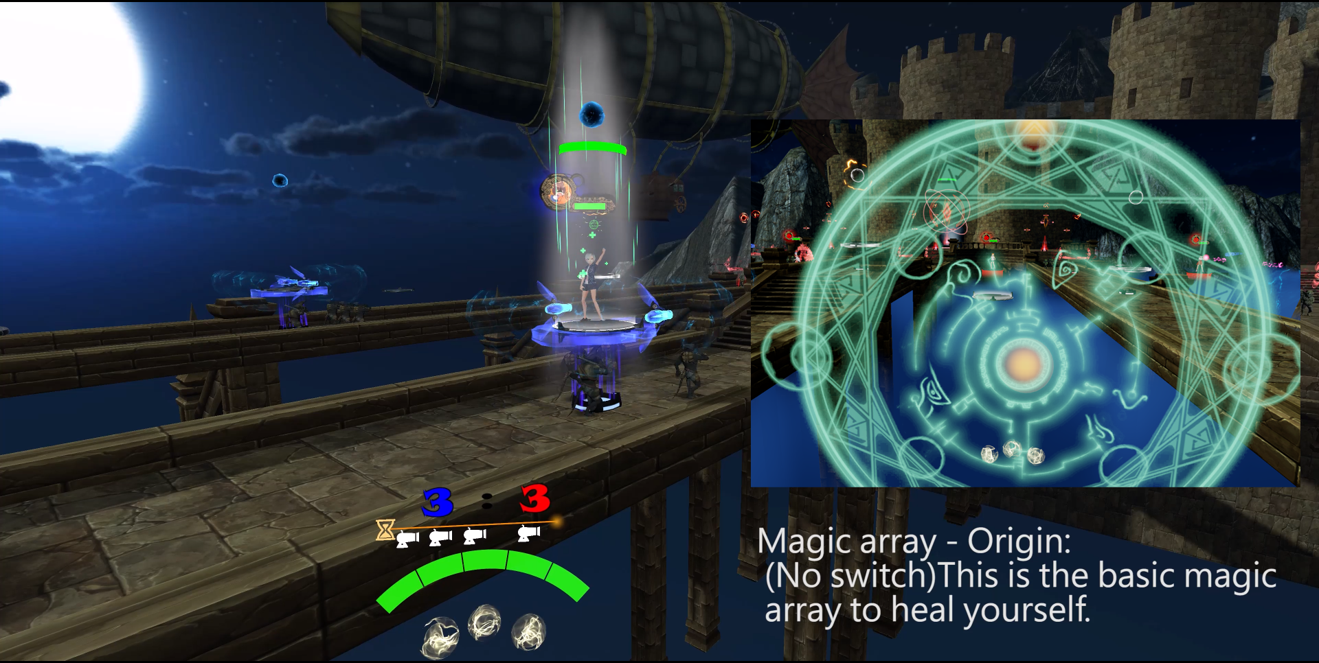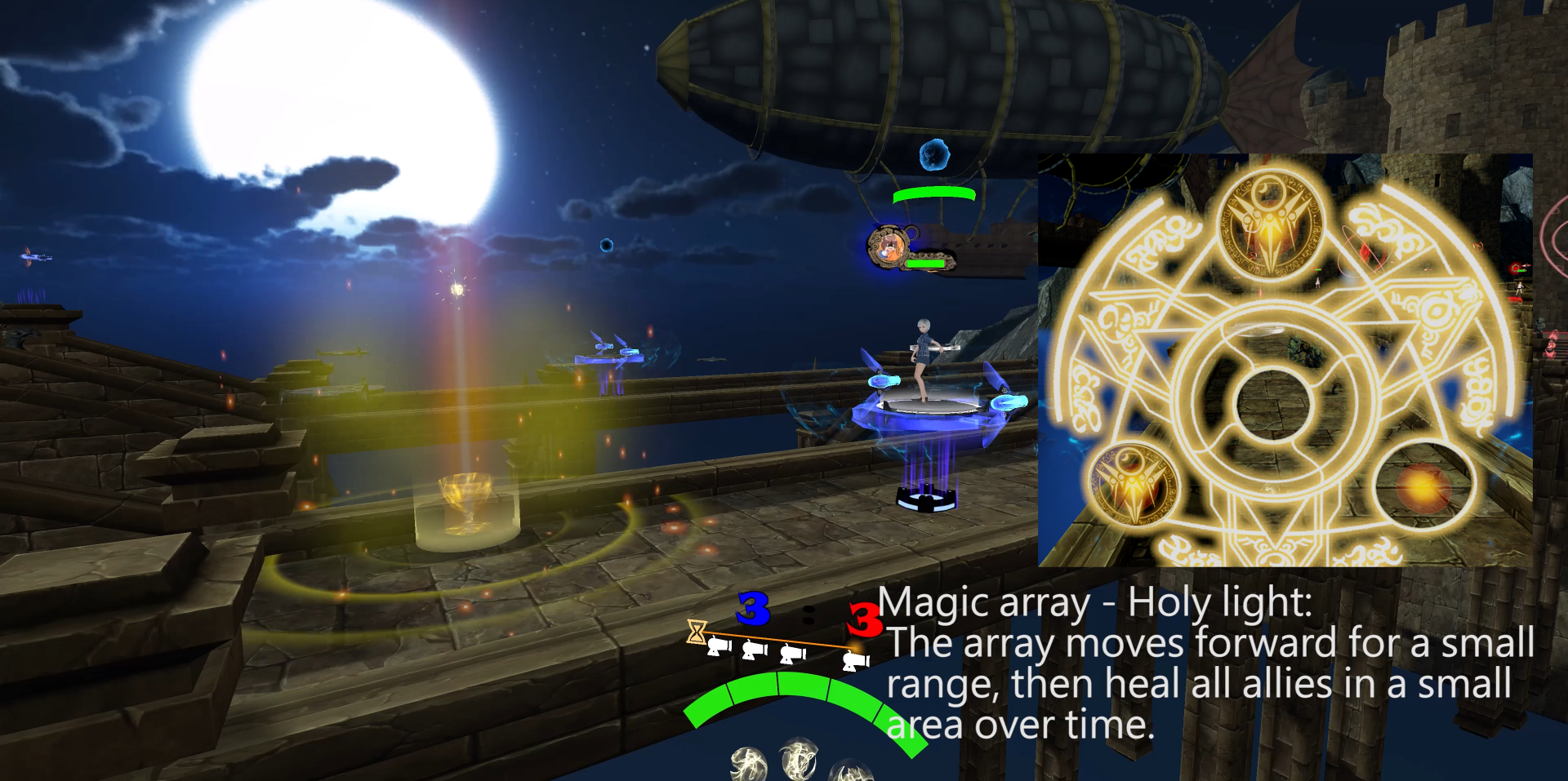 往前飞一小段距离后,产生持续一段时间的范围补血。