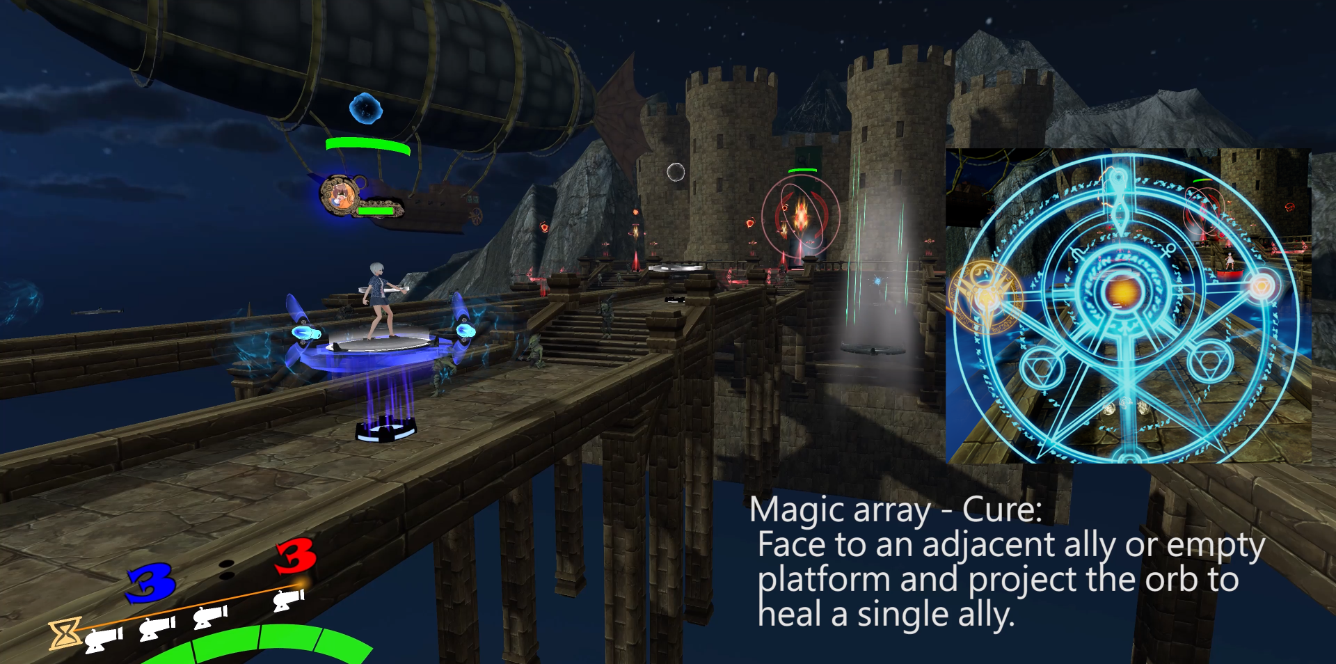 面对相邻的队友或无人平台,丢出法球后,治疗友方。