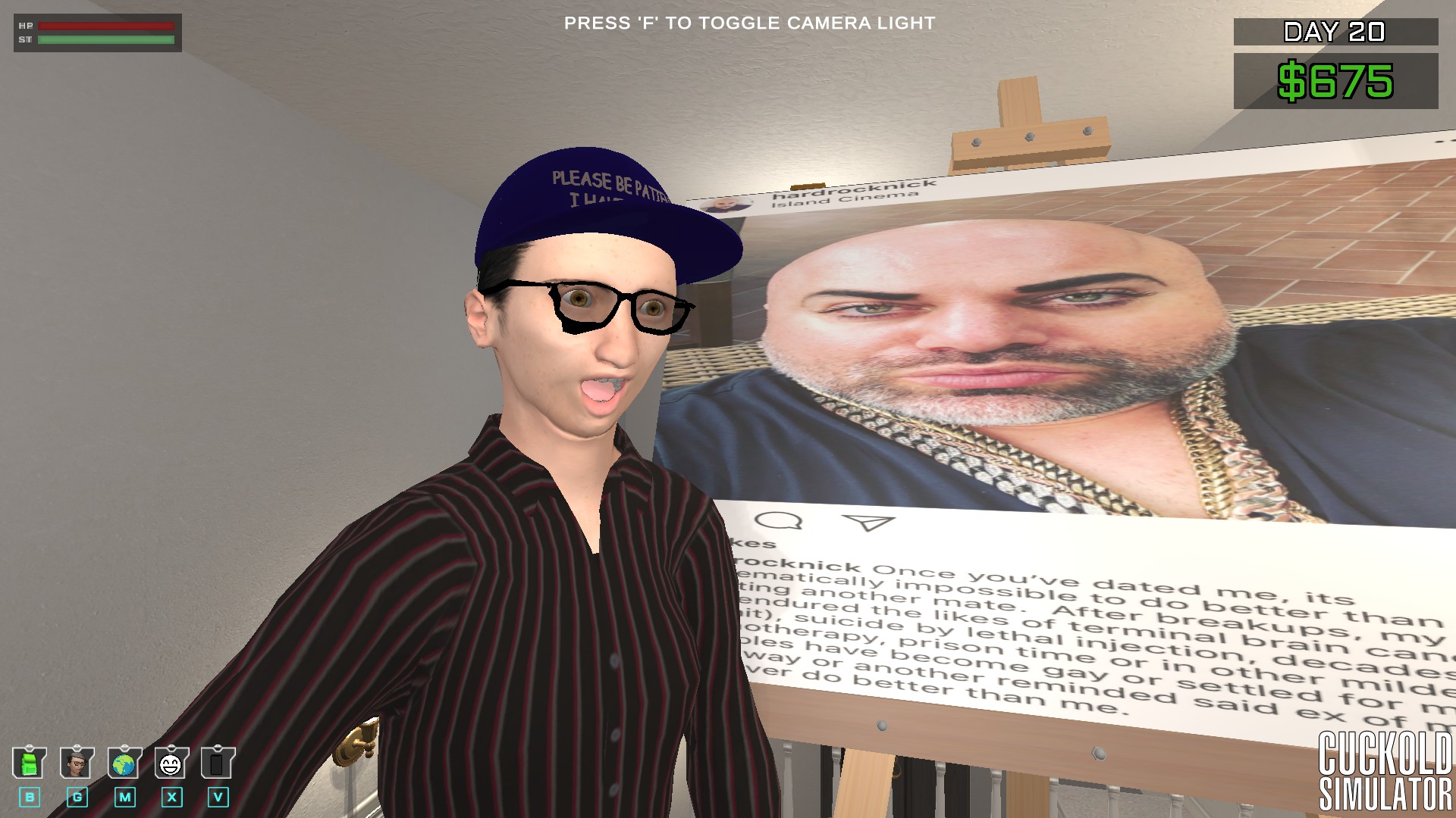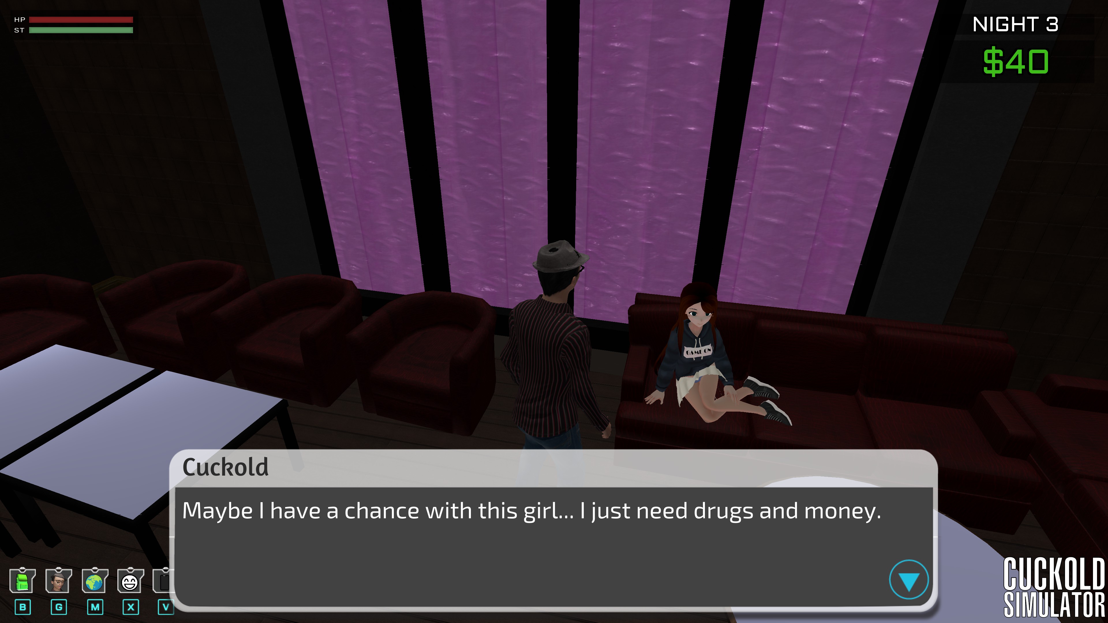 CUCKOLD SIMULATOR, the exciting new game where you play as Cuckold (that is his name) in his day-to-day life. Work hard, give all your money to the bull, and be verbally abused by your fat wife.