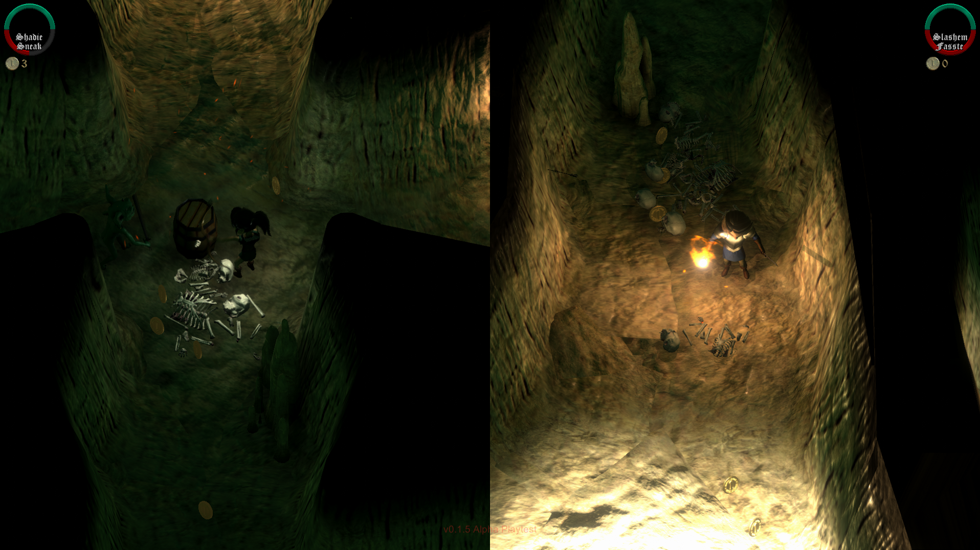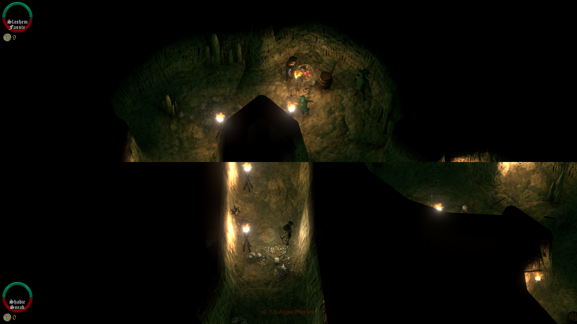 ...in which case the view splits into top-and-bottom views, keeping each player's health indicator inside their respective view at all times.