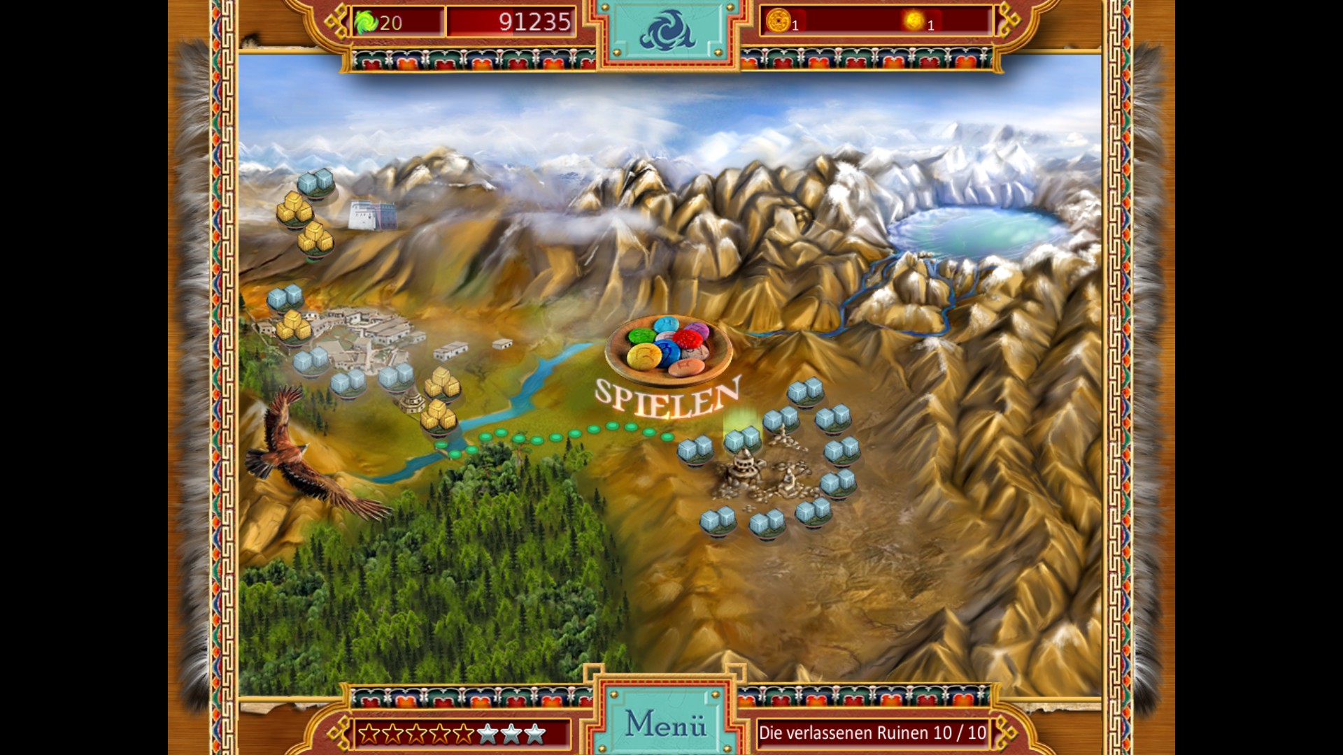 Help the young master of an ancient Tibetan game hunt for amazing treasures in this thrilling Match 3 game. Play quickly, strategically, and accurately to clear the board.