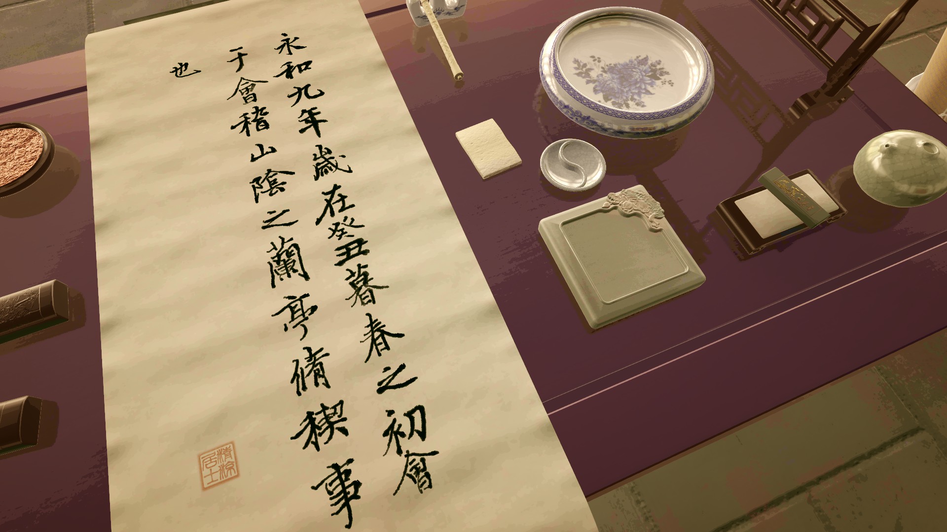 本作从博大精深的毛笔文化中汲取沧海一粟,以一个简单的模拟器来呈现中国古代书画场景。