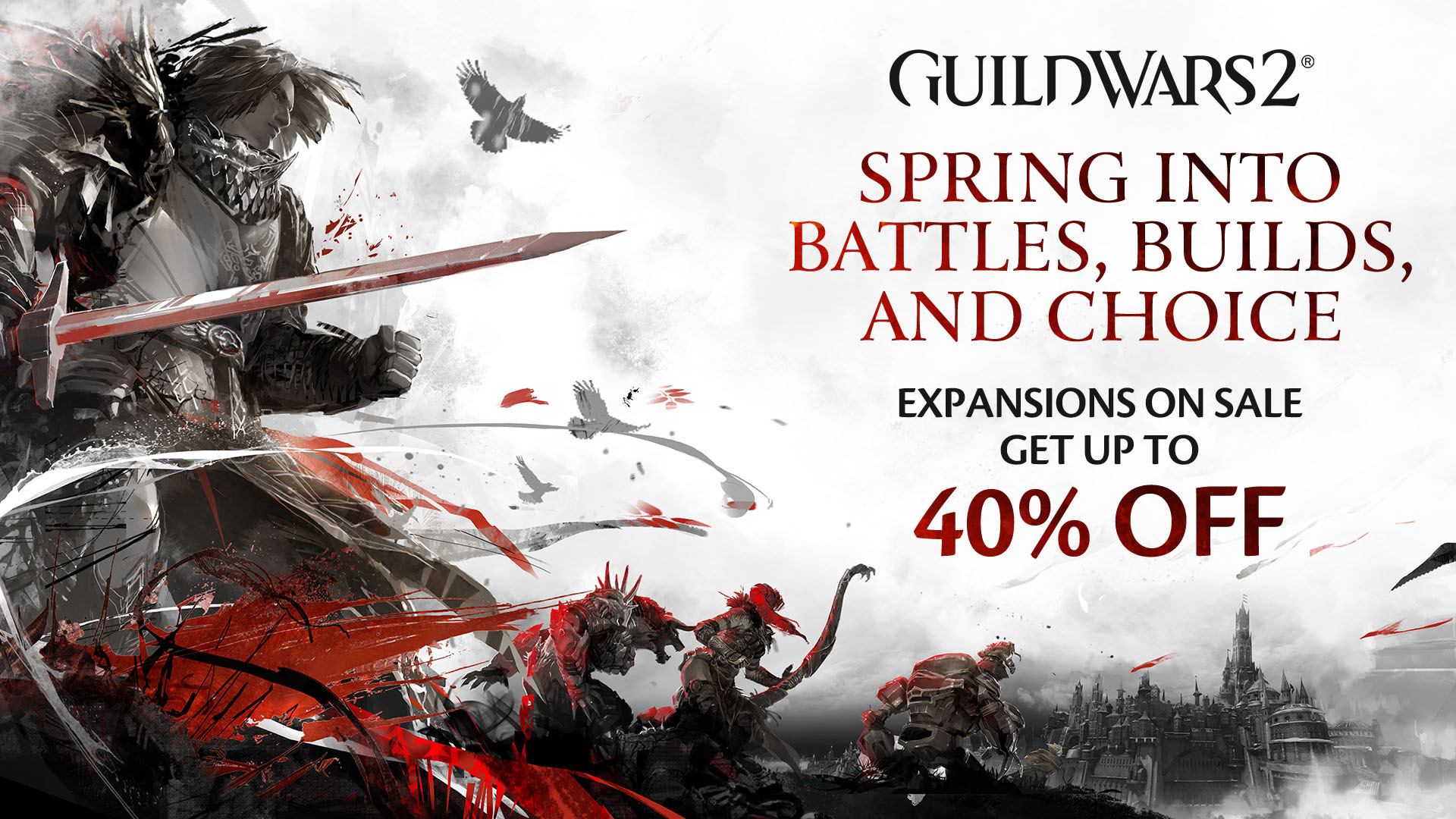 Now through March 26 at 10:00 a.m. Pacific (UTC-7), save when you buy or gift expansions! The Spring Sale features price reductions on past Guild Wars 2® expansions, plus the Complete Collection that bundles them together: