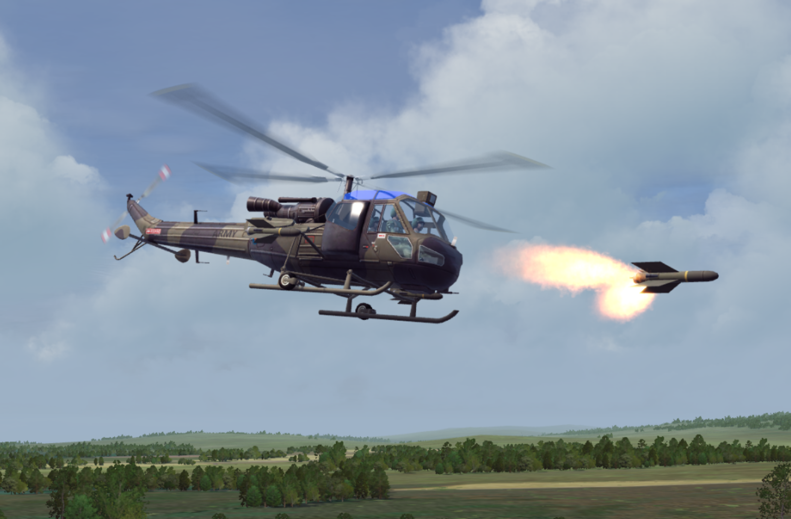 Scout helicopter firing the SS.11 anti-tank missile.