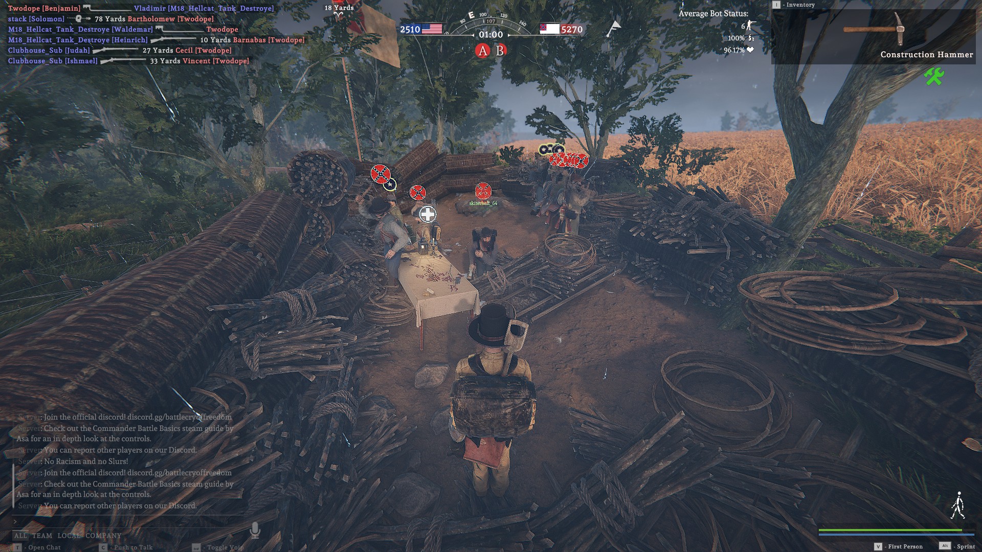 自由战吼的游戏背景以 19 世纪的美国南北战争为舞台,让玩家们有机会亲身成为美国北军或南军的一员,体验令人屏息的第一人称与第三人称的激烈实时战斗。