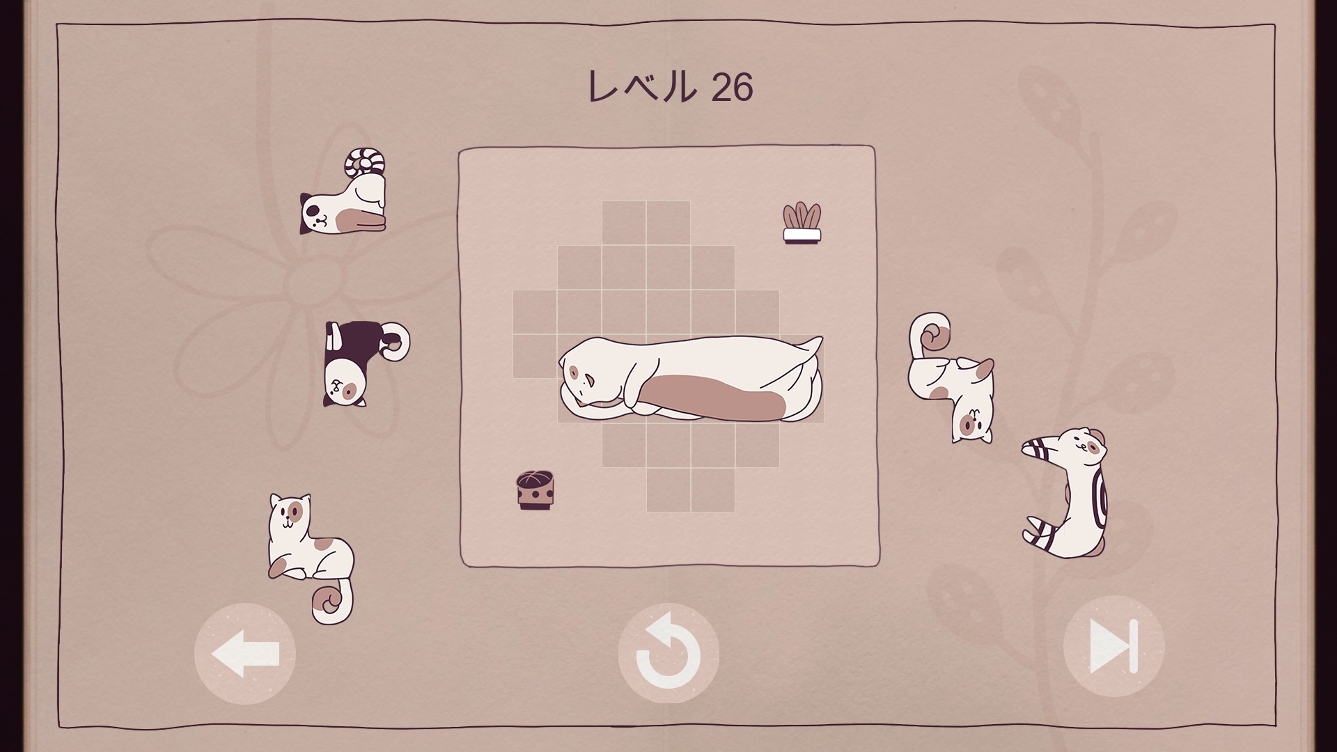 把你的猫友们整齐的放入方格中。“整猫宫”有80个精致的关卡和一大堆不同形状的猫咪们。