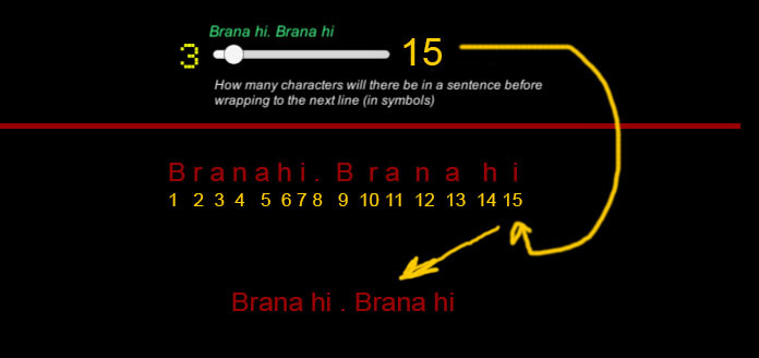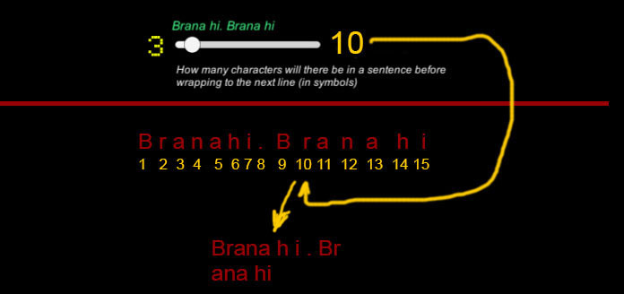 选项的第三段负责句子中的连字符,该句子的每个字符都单独计数,如果您已设置该句子应包含10个字符。然后将文本分为10个字符的句子