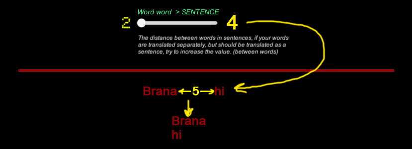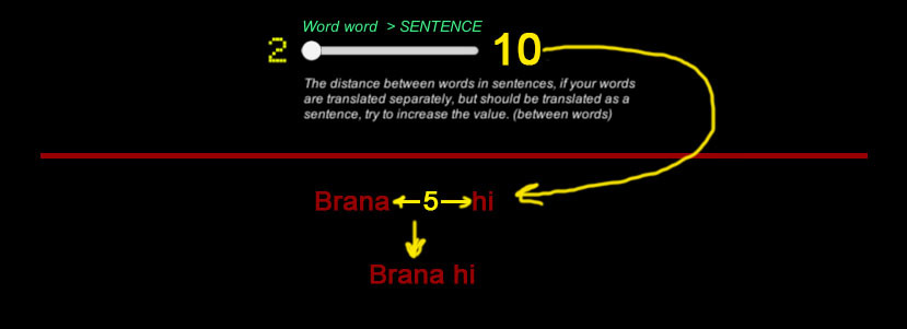 选项的第二项负责系统是否将单词计数为单词还是句子。含义越高,距离越远的单词将被视为一个句子,并将被组合在一起。这张图片显示单词被翻译成单词