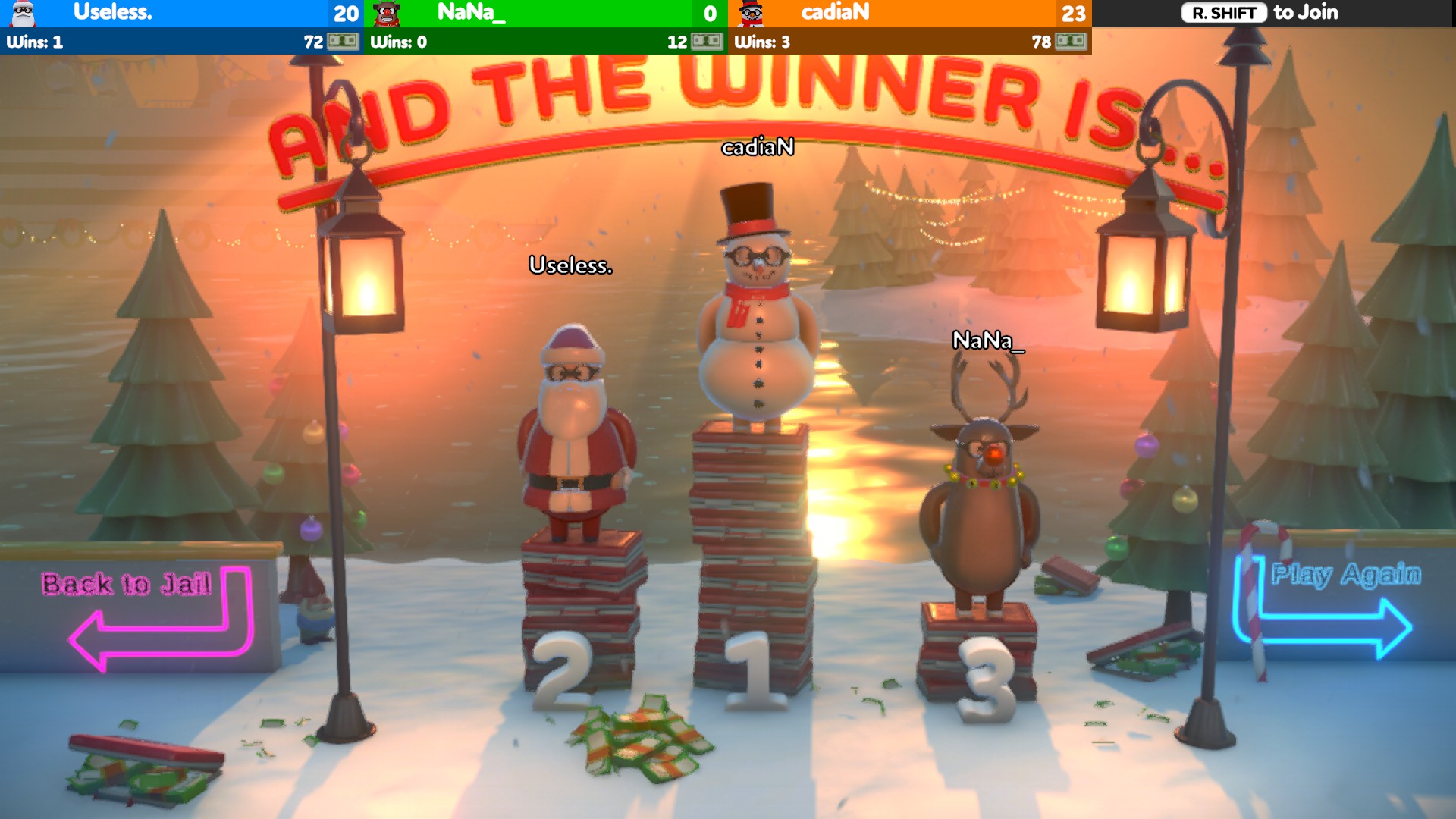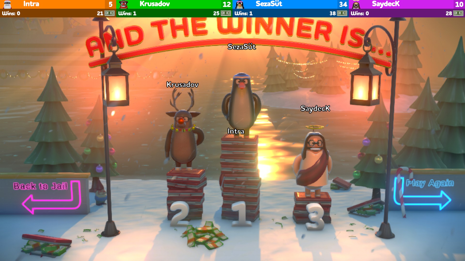 Rubber Bandits: Christmas Prologue is a sneak peek at the upcoming heist brawler, Rubber Bandits! Steal from Santa, beat up the other bandits and keep their presents for yourself. See you on the naughty list!