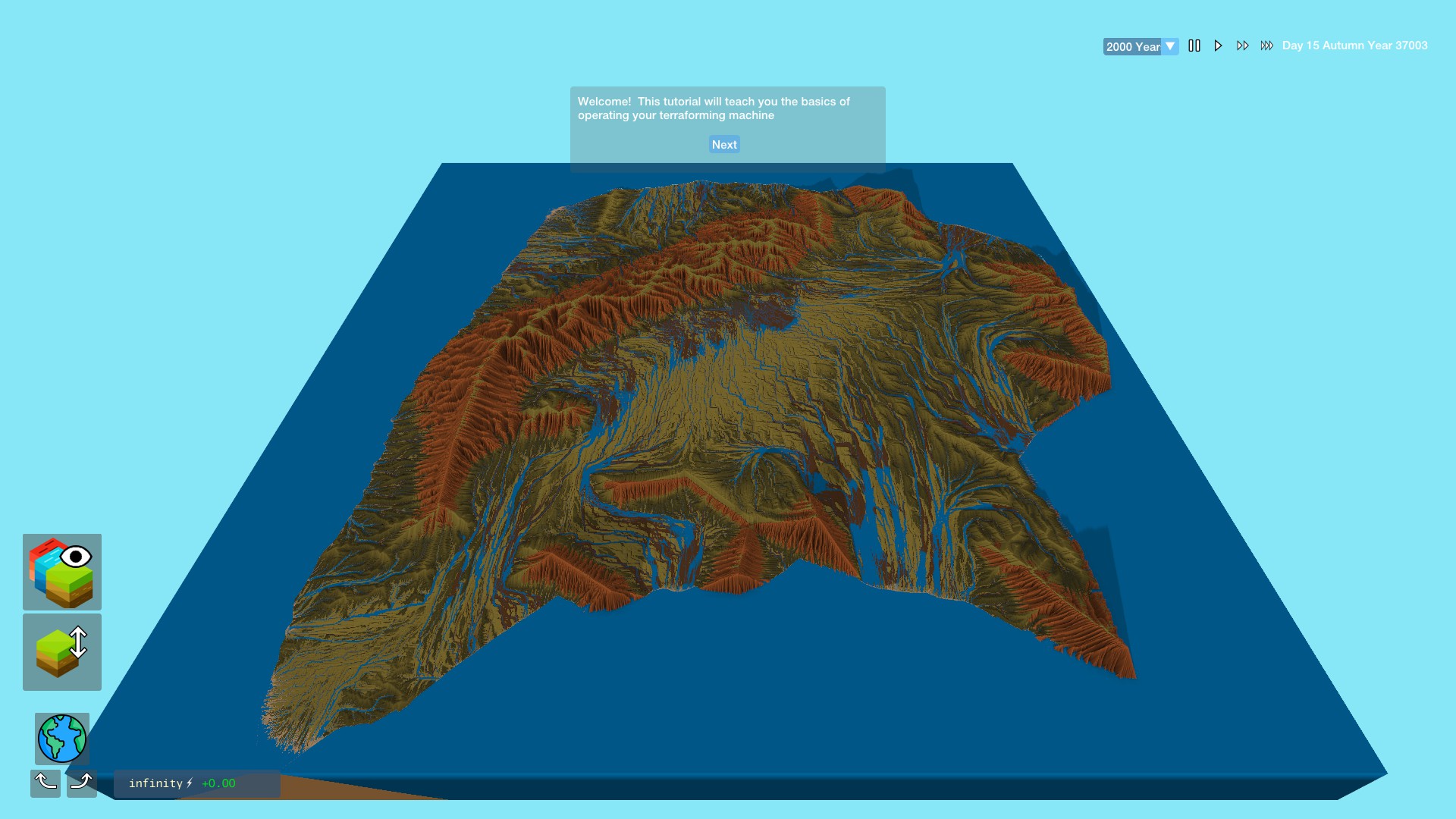Play god and create your own world in this complex simulation. Plate tectonics, wind and water erosion and plant life all develop and interact to produce a world that is viewable from a single tree to kilometres across.