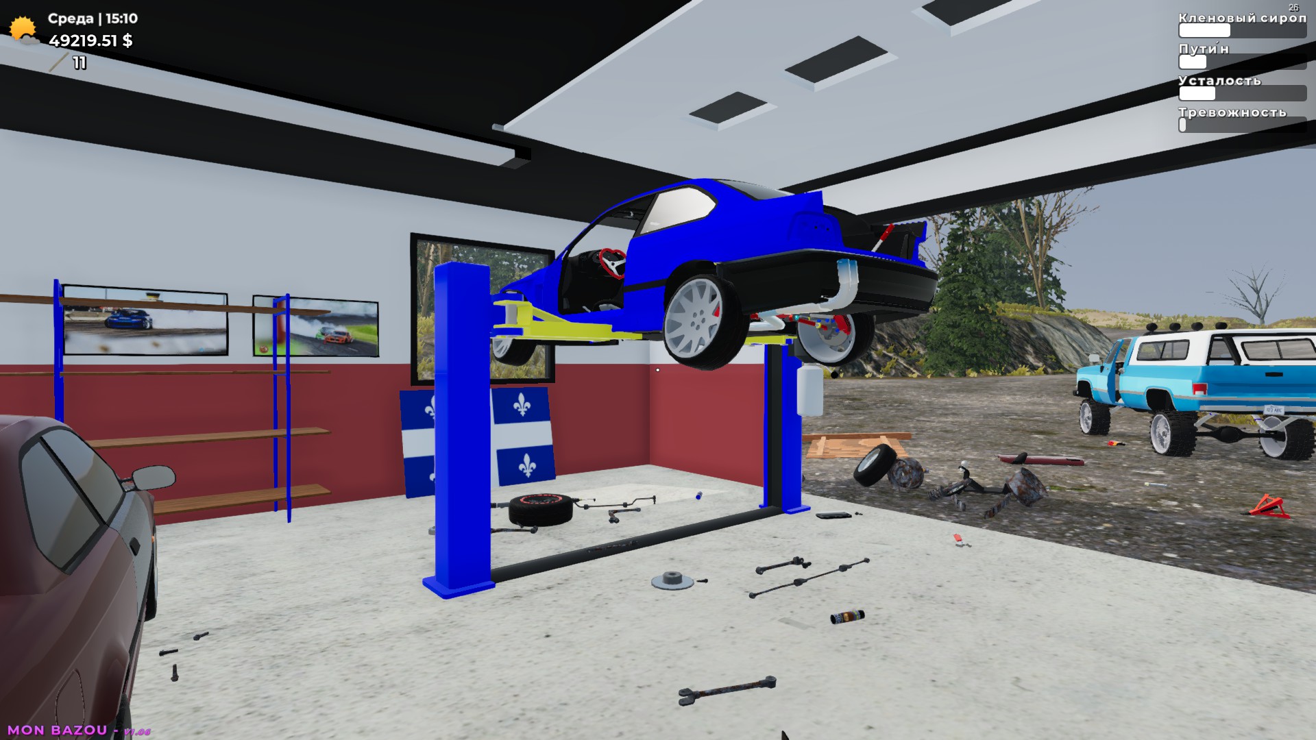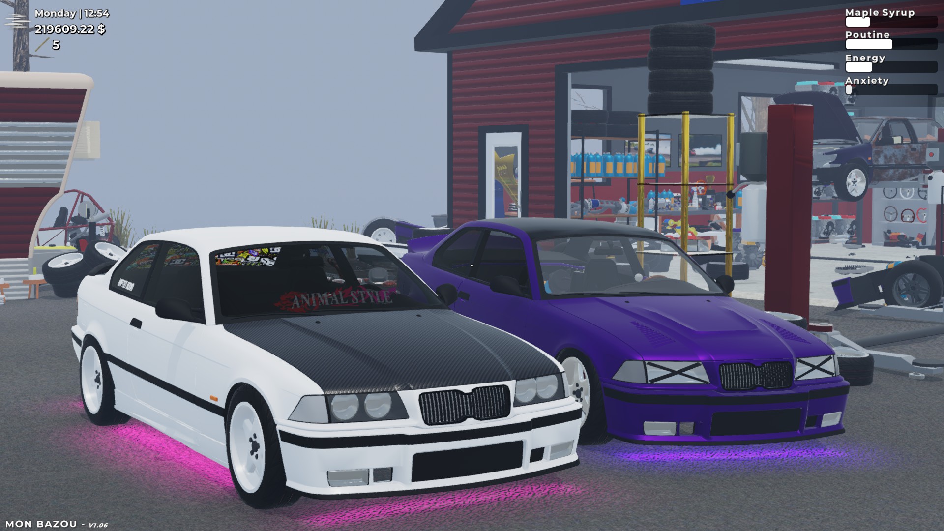 Build your crappy vehicle into a race car, install the parts yourself. Make money by cutting wood, racing at night or delivering pizza. Maybe you want to manage a sugar shack or build yourself a big garage?
