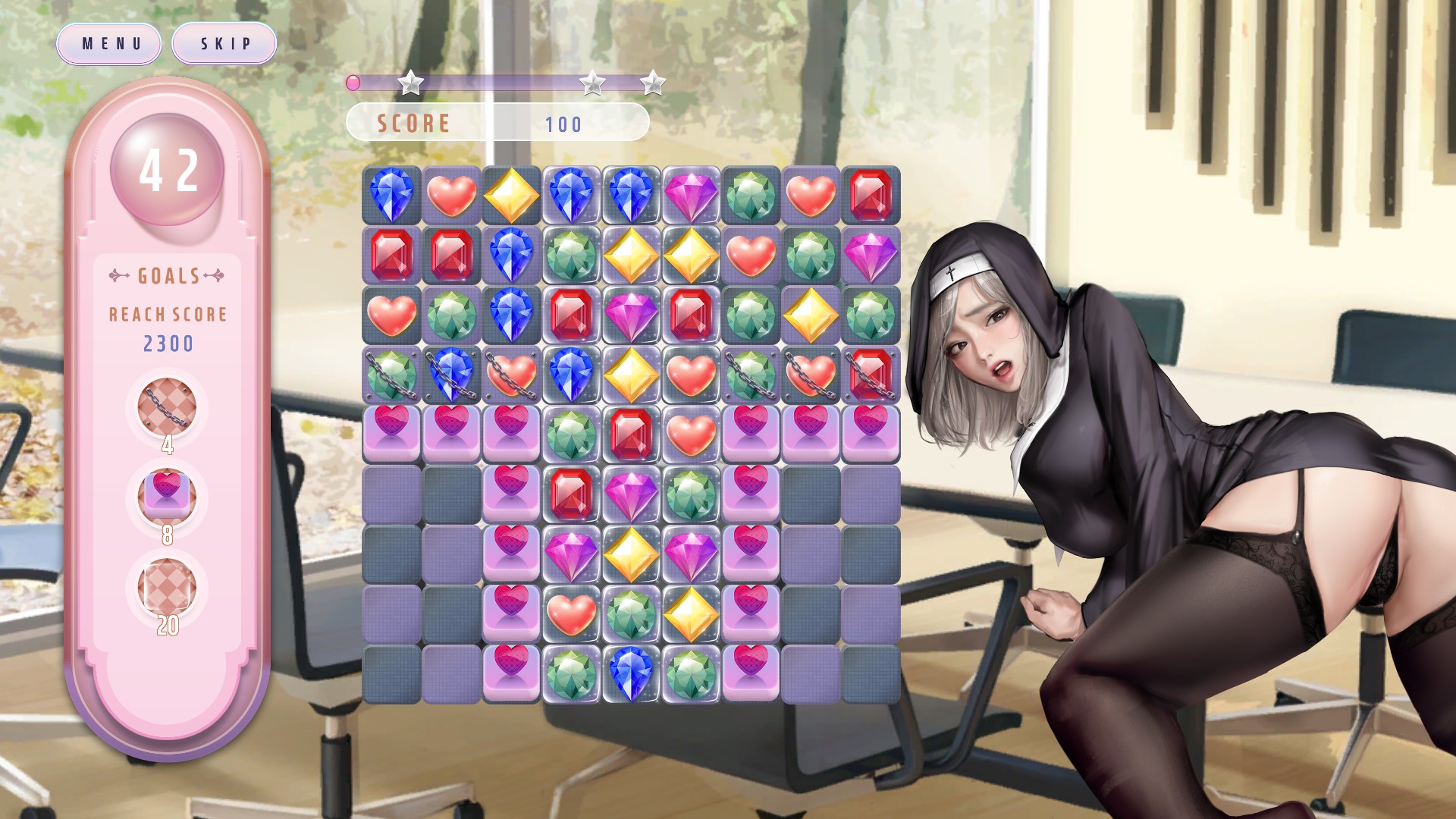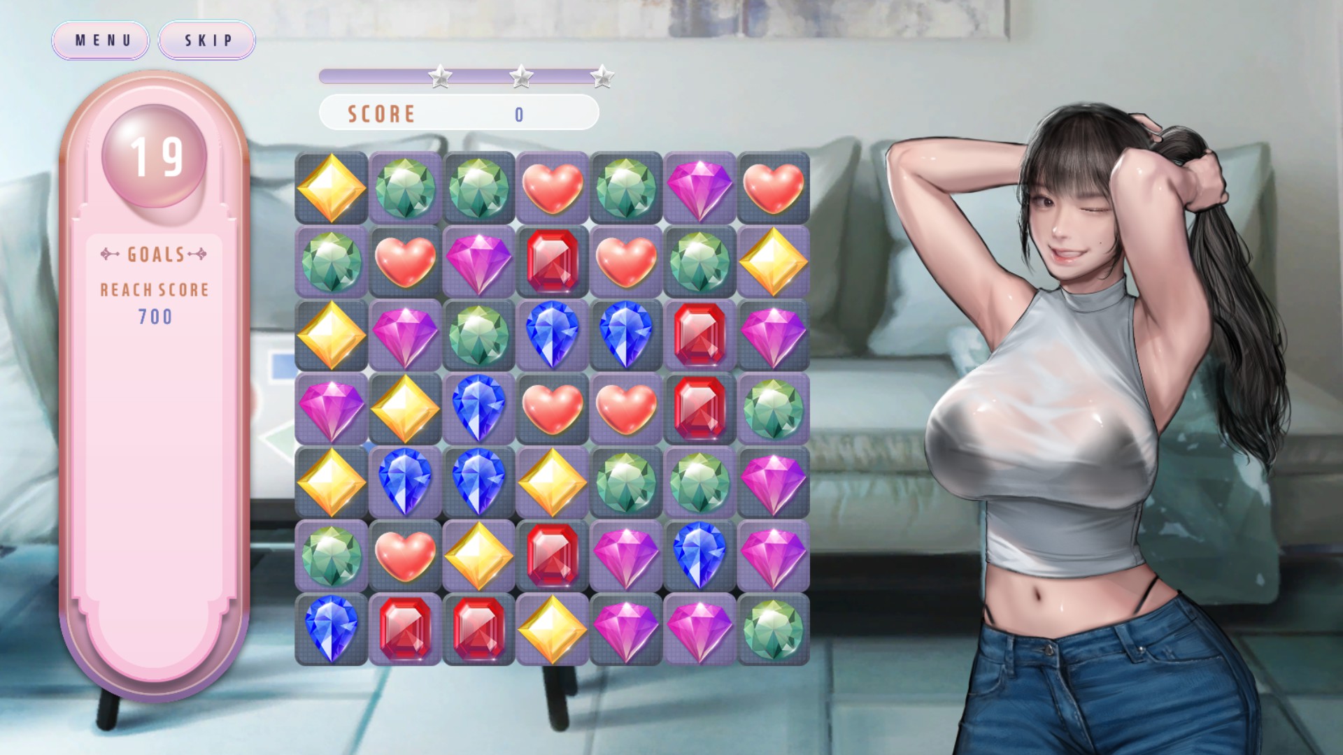 “WISH-Paradise High”是一款视觉小说元素于一身的3对决拼图游戏,培养不同个性的女性角色而产生好感。