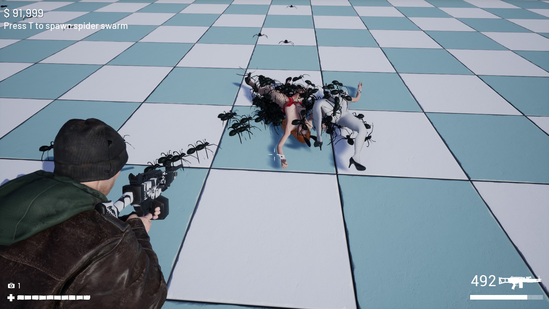 Try to survive in Spider Hell. Fight with big, realistic and terrifying spiders and versus swarms with literally thousands of spiders.