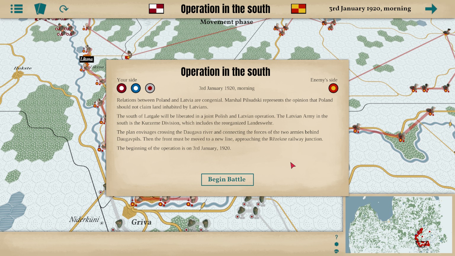 After the Great War, the Red Army advanced westward to ignite revolution in Europe. In this turn-based hex wargame, you will experience the key events of the Latvian War of Independence during this exciting and turbulent era.