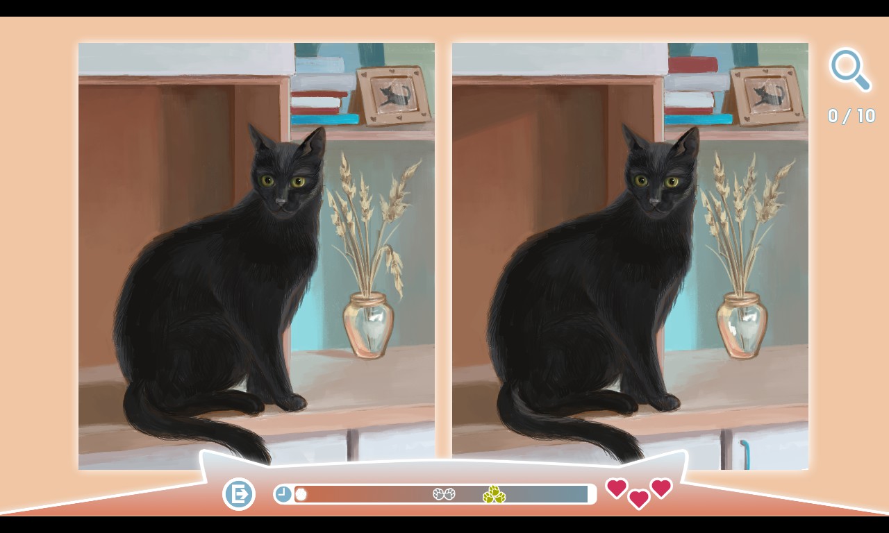 可爱的猫咪想和你一起玩!享受你的空闲时间,让我们毛茸茸的朋友开心起来!找出两张相似手工图片的不同之处。
