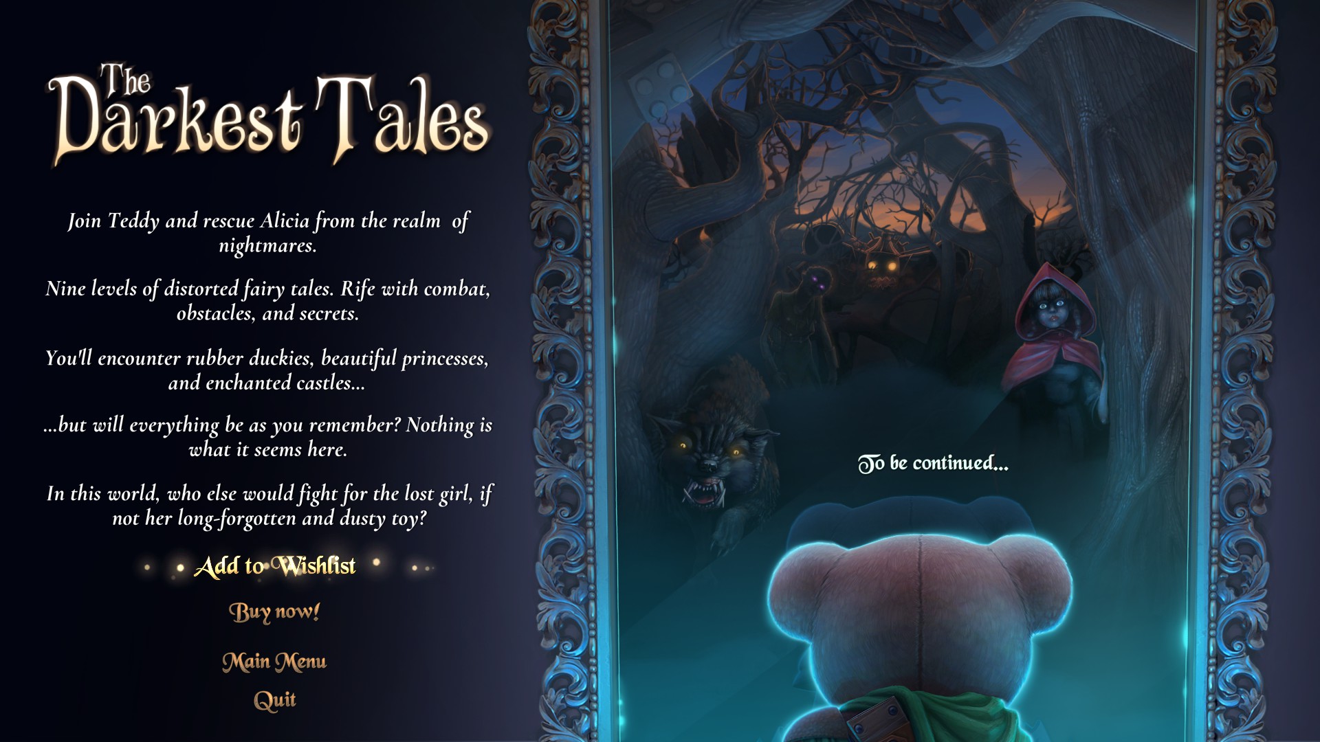 当噩梦悄悄潜入现实时,唯一能帮助我们的,便是那些我们从小便相信的神奇力量。一只勇敢的泰迪熊和他的仙女搭档准备前往“从此过着幸福的生活”的黑暗面,拯救他的主人艾莉西亚。
