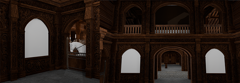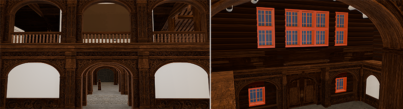 The first floor of the main hall has been made smaller to make the outside look like a "Stabbur".