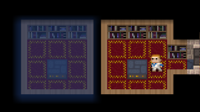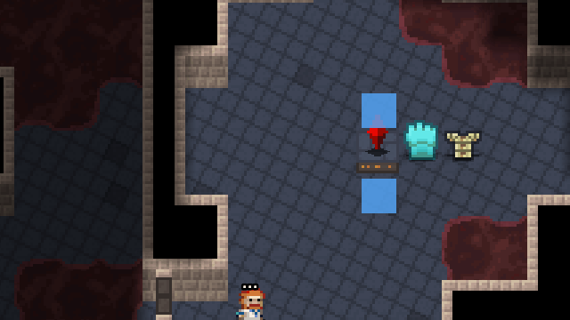 Tier 2 treasure rooms will have mid tier loot and involve a couple caves-level enemies or hazards configured in a way that the player will need some better equipment and/or a consumable to overcome them. As an example, this room uses bookcases to hide its real loot, so you'll need an item capable of burning them down.