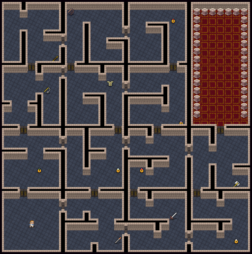 My goal is for these tiers of treasure rooms and variance of enemy strength to create a nice gameplay flow through the quest. The player starts out by sneaking around, identifying the rooms they can solve, and steadily gets stronger and becomes able to confront the hazards they previously avoided.