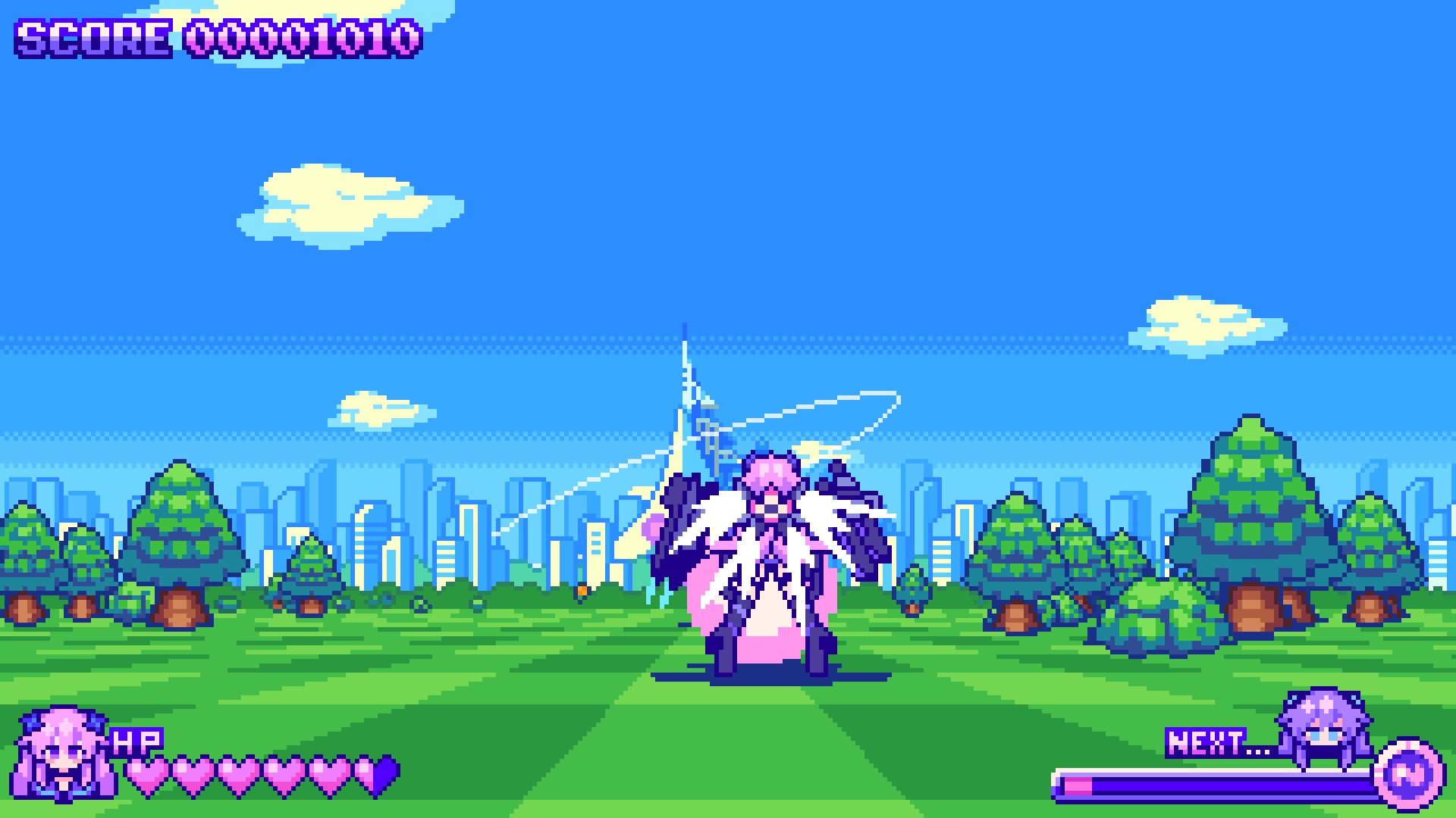 Older Neptune and friends shoot and slash through enemies of Gamindustri in this rail shooter!