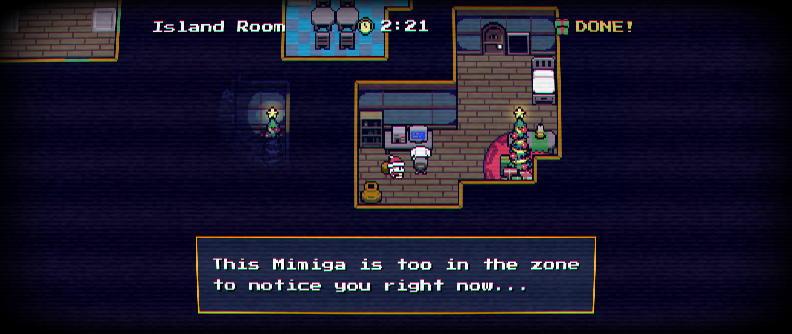After Balrog recovers the Christmas presents that were stolen by Chaba, the cowardly Mimiga named Santa must sneak into every house and return the missing packages. Be the Mimiga Who Saves Christmas!