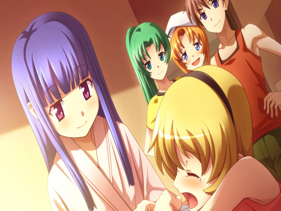 Higurashi When They Cry is a sound novel. The music, backgrounds and characters work together to create a world that is the stage of a novel for the user to read. They laugh and cry and get angry. The user takes the point of view of the protagonist to experience the story.