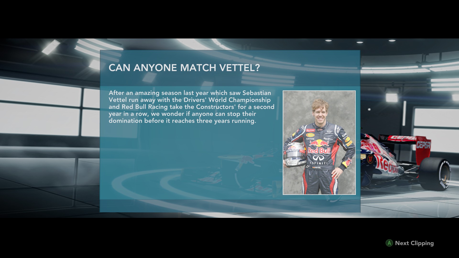 The next game in the BAFTA-winning series featuring all the official drivers, teams and circuits from the 2012 FIA FORMULA ONE WORLD CHAMPIONSHIP™.