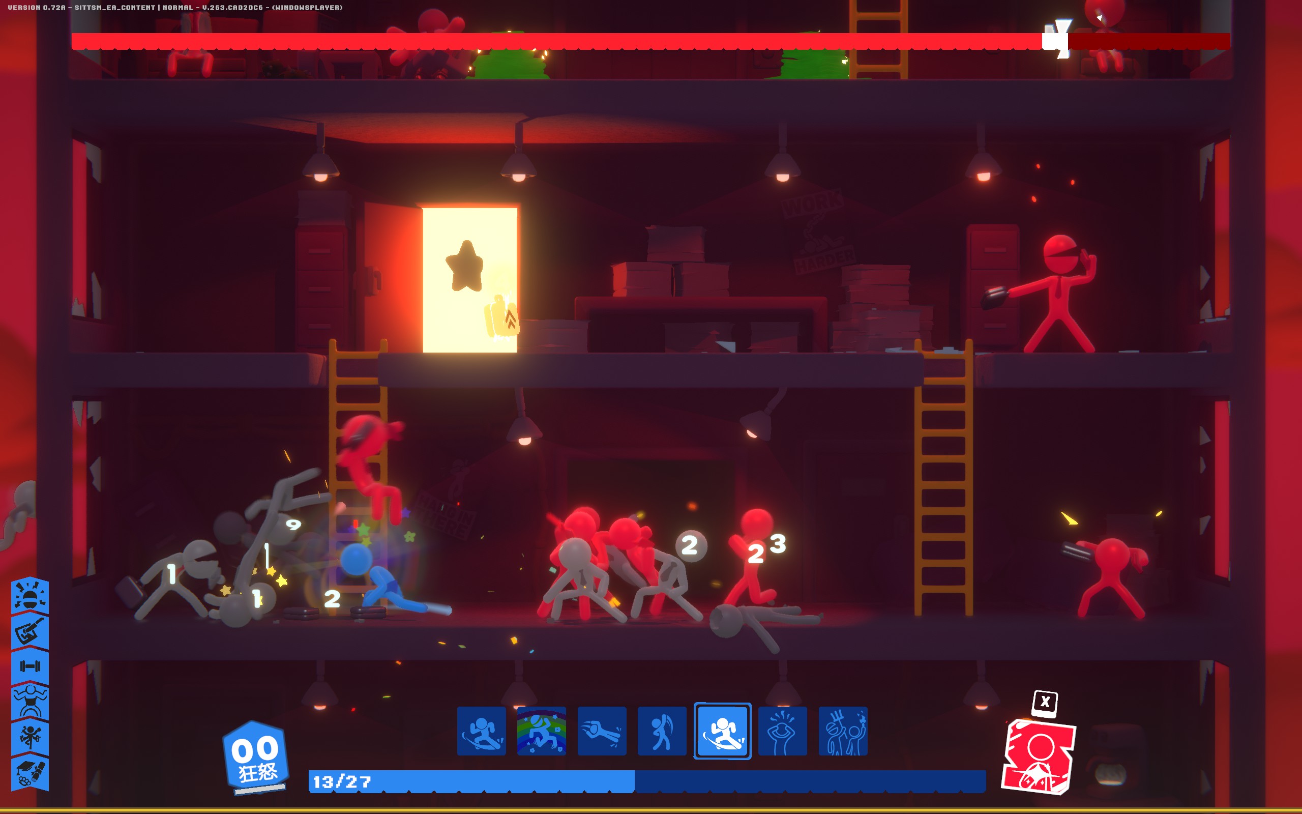 Stick it to the Stickman是一款基于物理的格斗游戏。你需要暴揍海量红色火柴人,一路晋升成为公司老大。从数百种独特招式中选择,打造完美的战斗机器,在职场上拳打脚踢,攀上顶峰。