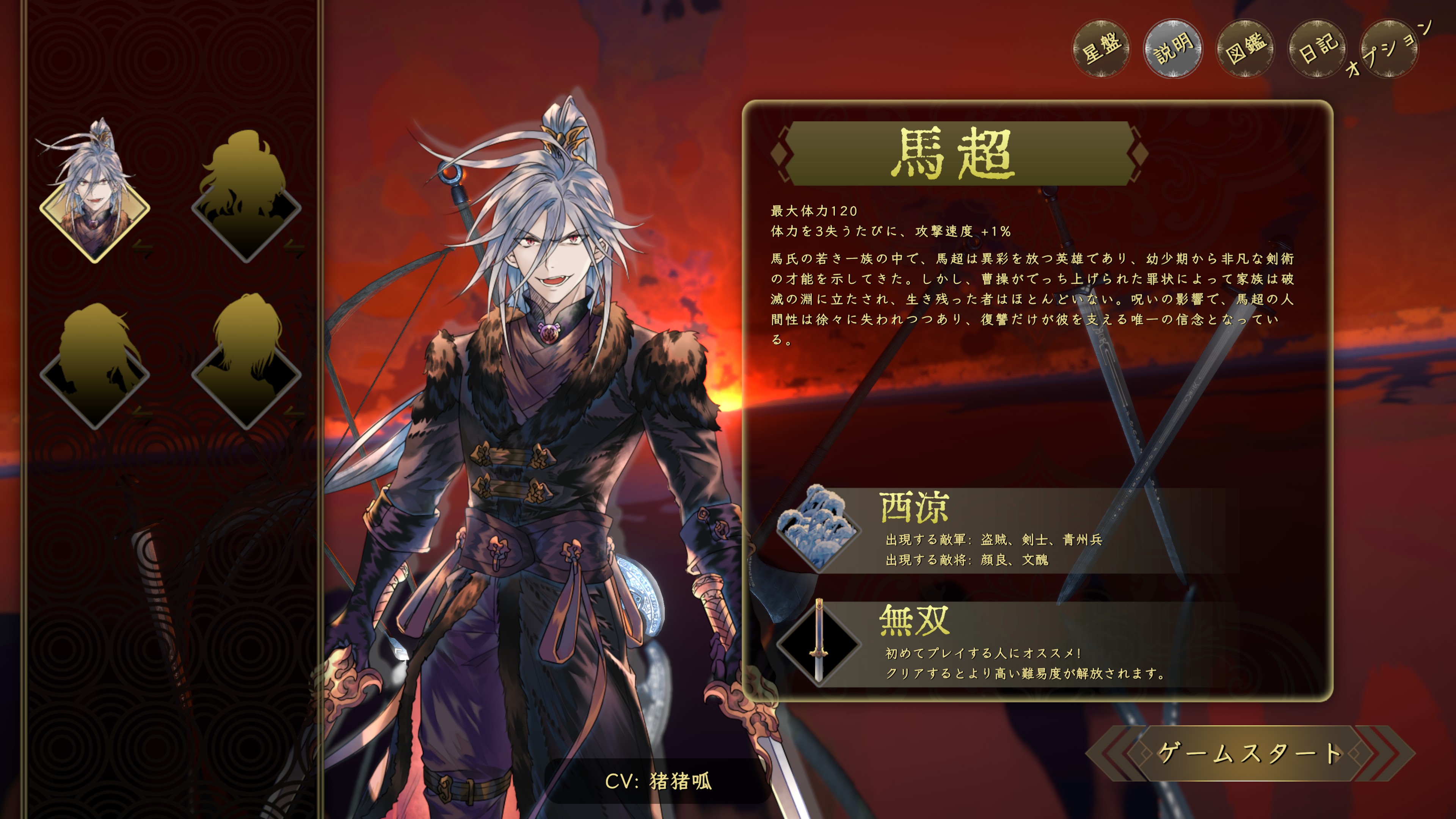 Roguelite类节奏割草游戏。你需要扮演马超,在战斗中升级武器,组合羁绊,突破重围,杀出一条血路,就算被世界诅咒,也要手刃杀父仇人曹操!