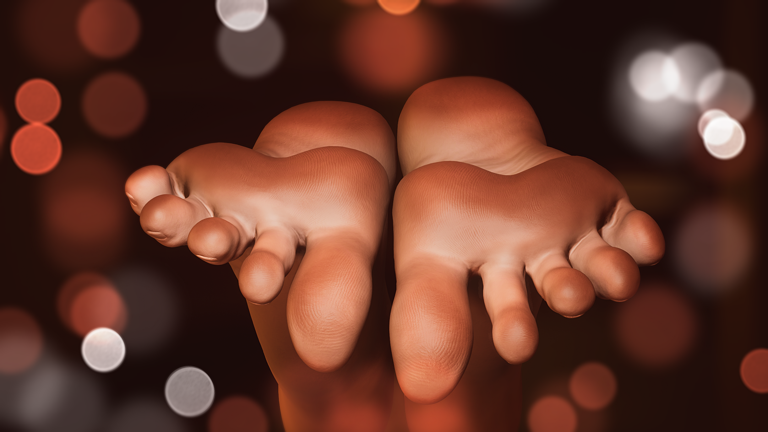 HAELE 3D - Feet Poser Pro 可渲染逼真和风格化的脚部绘图参考姿势和动画。可编辑脚底皱纹、指甲油、静脉、指纹甚至老茧等每个细节。许多内置预设、自定义背景、颜色、材质、灯光等。