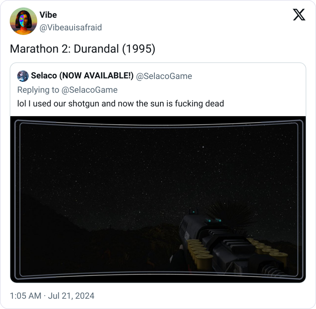 From the team that brought you Aleph One, the classic sci-fi FPS Marathon 2: Durandal from Bungie on Mac revived for modern hardware by the fan community.