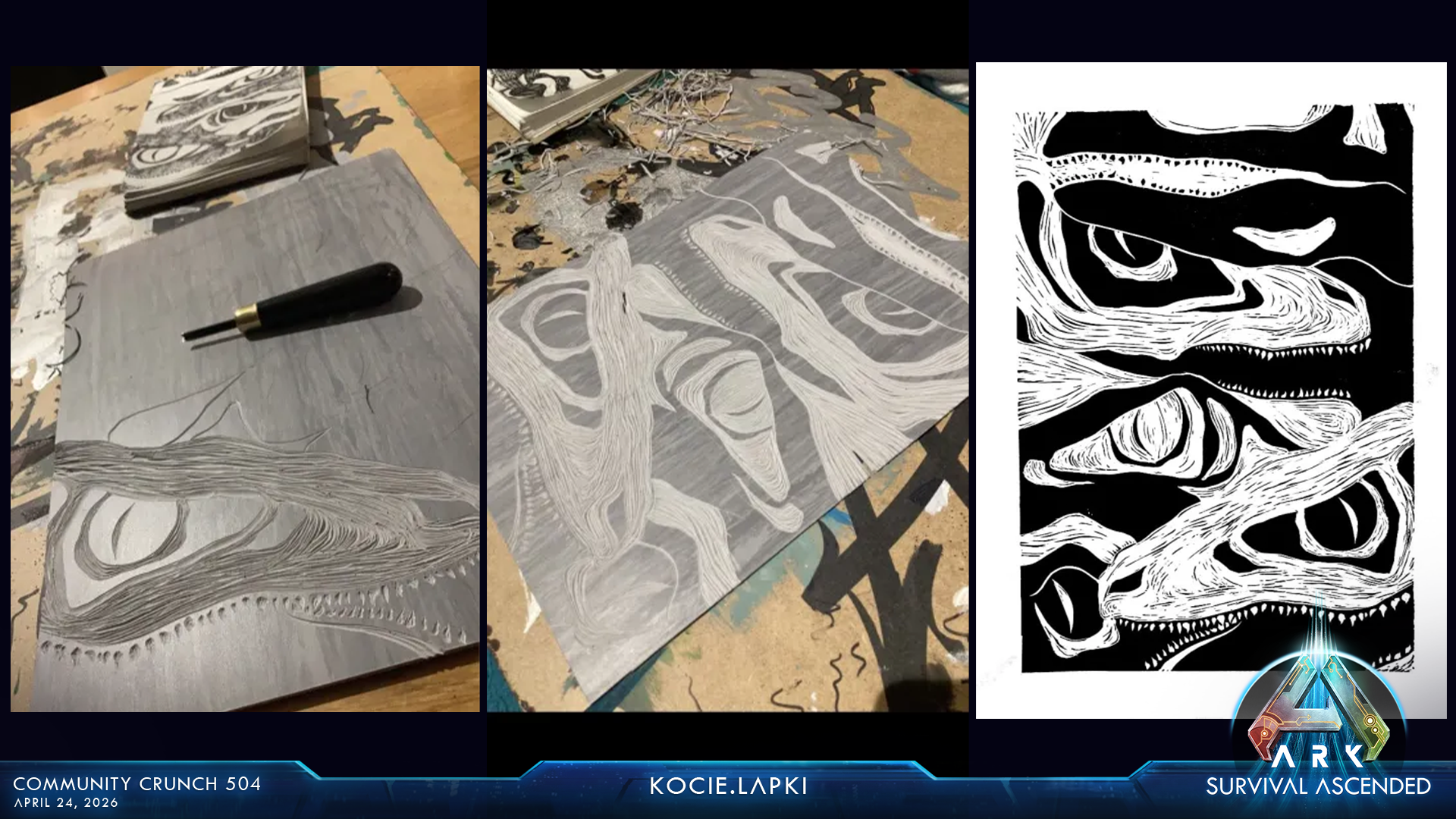 Print using the traditional manual linocut technique