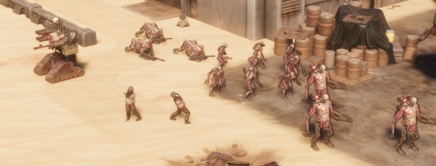 Construct Drone: Now less tanky and lower accuracy, but more elements in a unit. When an element gets killed, they scream and does morale damage to all non-construct units nearby. This is now a proper tar-pit unit that tries to bog the player down and divert attacks and attention from other targets.