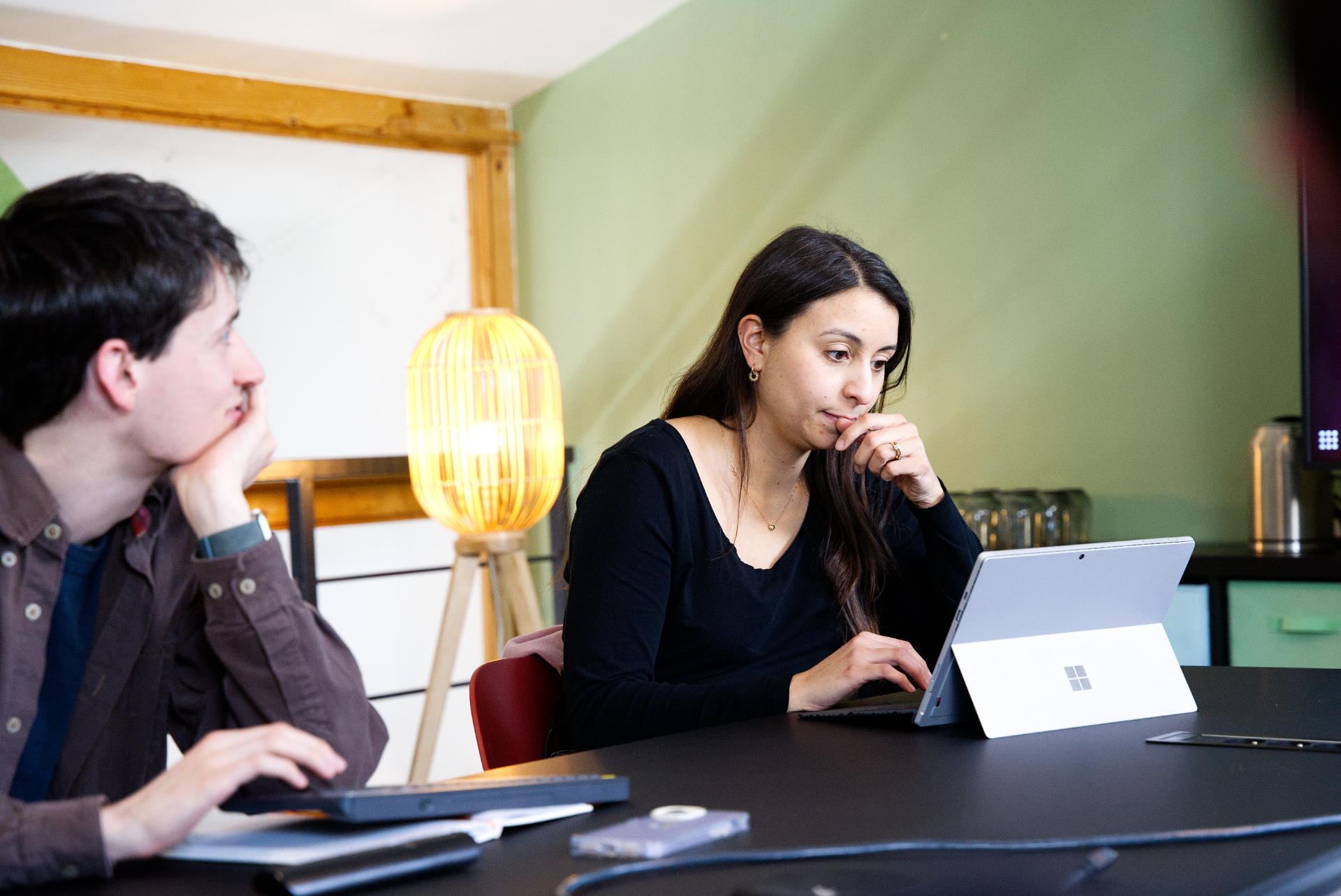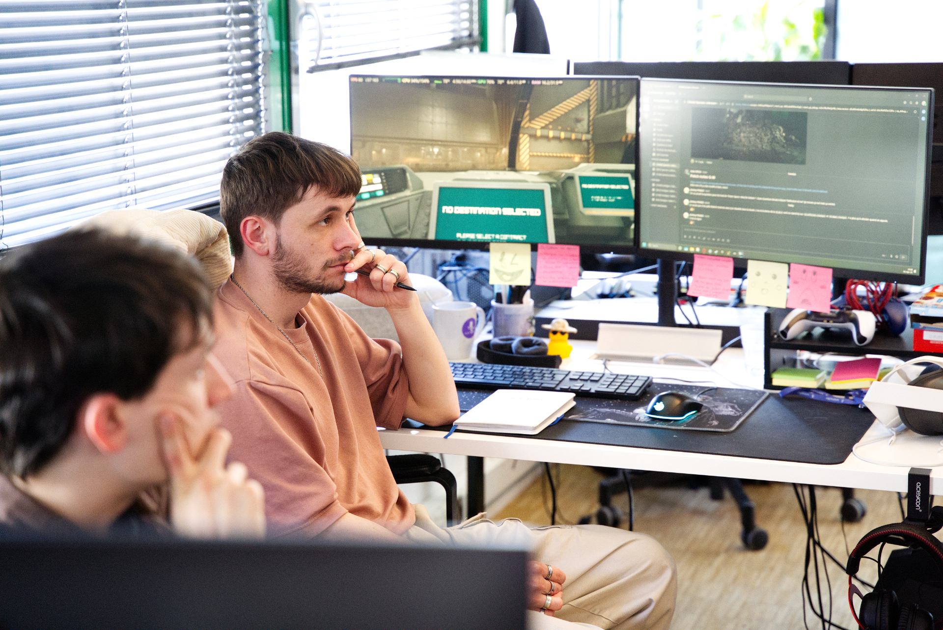 Guilhem (UX/UI & Game Designer) and Nola (Production Director) during the "Sprint Review meeting" (the meeting dedicated to defining priorities for the next versions)