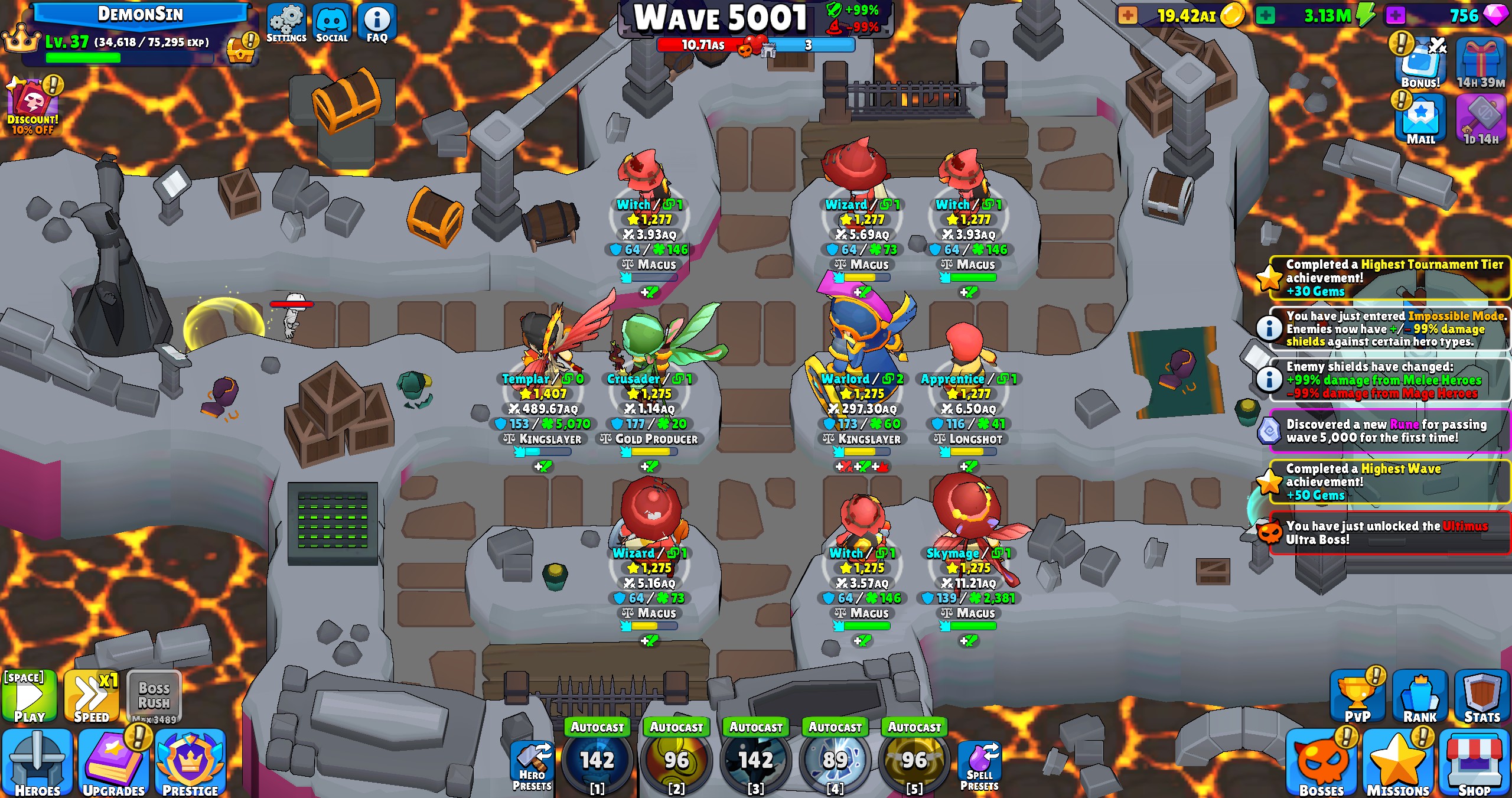 Endless idle tower defense game full of deep strategy and combat mechanics. Unlock and upgrade dozens of epic fantasy heroes to defeat an infinite swarm of enemy monsters. Strategize hero positions, synergies, and skills for an effective defense, then sit back and let the auto-battler do its thing!