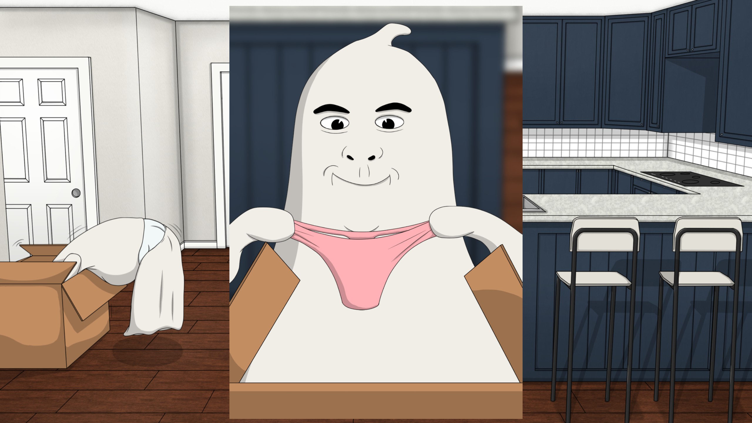 Interview with the Horny Ghost is a super short, super free Adult Visual Novel made for a game jam. In the game you play a single-minded and perverted ghost and learn some lessons along the way.
