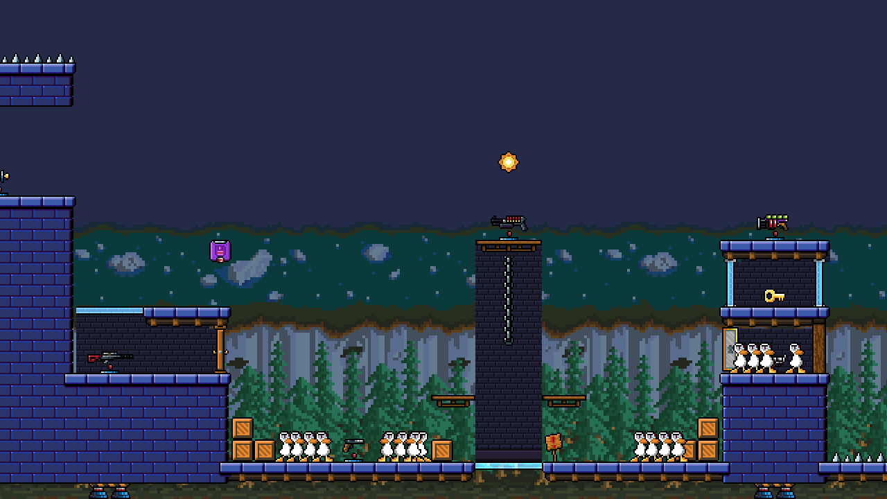 Enter the futuristic year of 1984, an age where ducks run wild in a frantic battle for glory. Blast your friends with Shotguns, Net Guns, Mind Control Rays, Saxophones, Magnet Guns, and much, much more. This is DUCK GAME. Don't blink.
