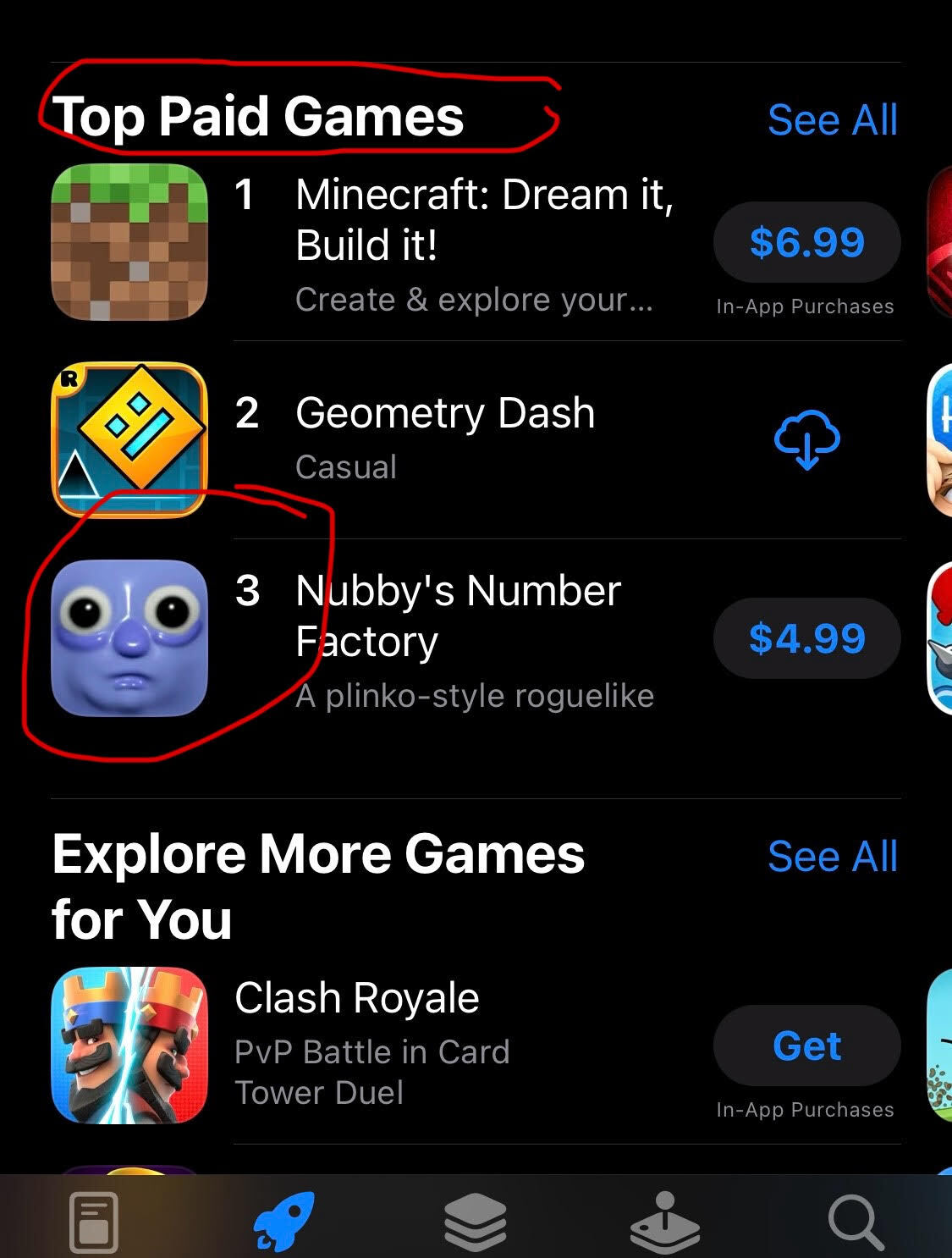 Yes, this screenshot is actually real! I am ecstatic that nubby mobile is up there with the giants on the appstore, even if its just for a week or so. If you purchased the full version of nubby mobile on apple or android, I truly appreciate your support. Thank you <3
