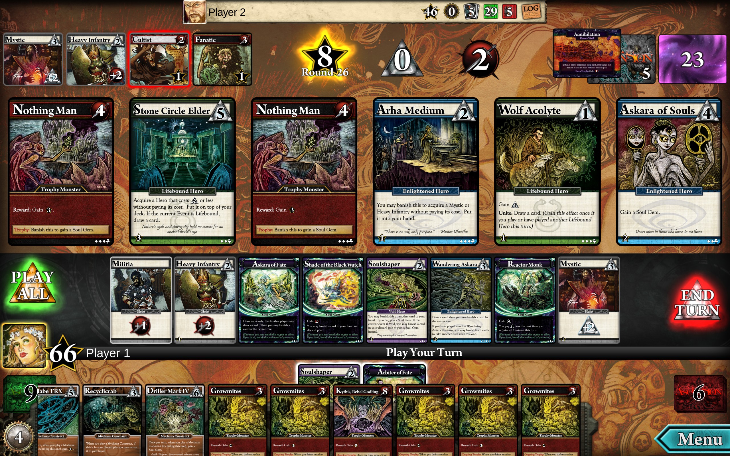 Ascension: Deckbuilding Game is now available for your PC and Mac, complete with 9 full expansion decks! Play alone or with friends to battle against the Fallen One for honor and victory.