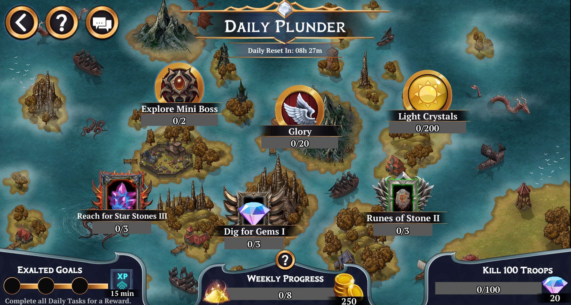 Star Stone Daily Plunder tasks will always take the place of the bottom left node. “Exalted” Goal text on the left will be updated before release.