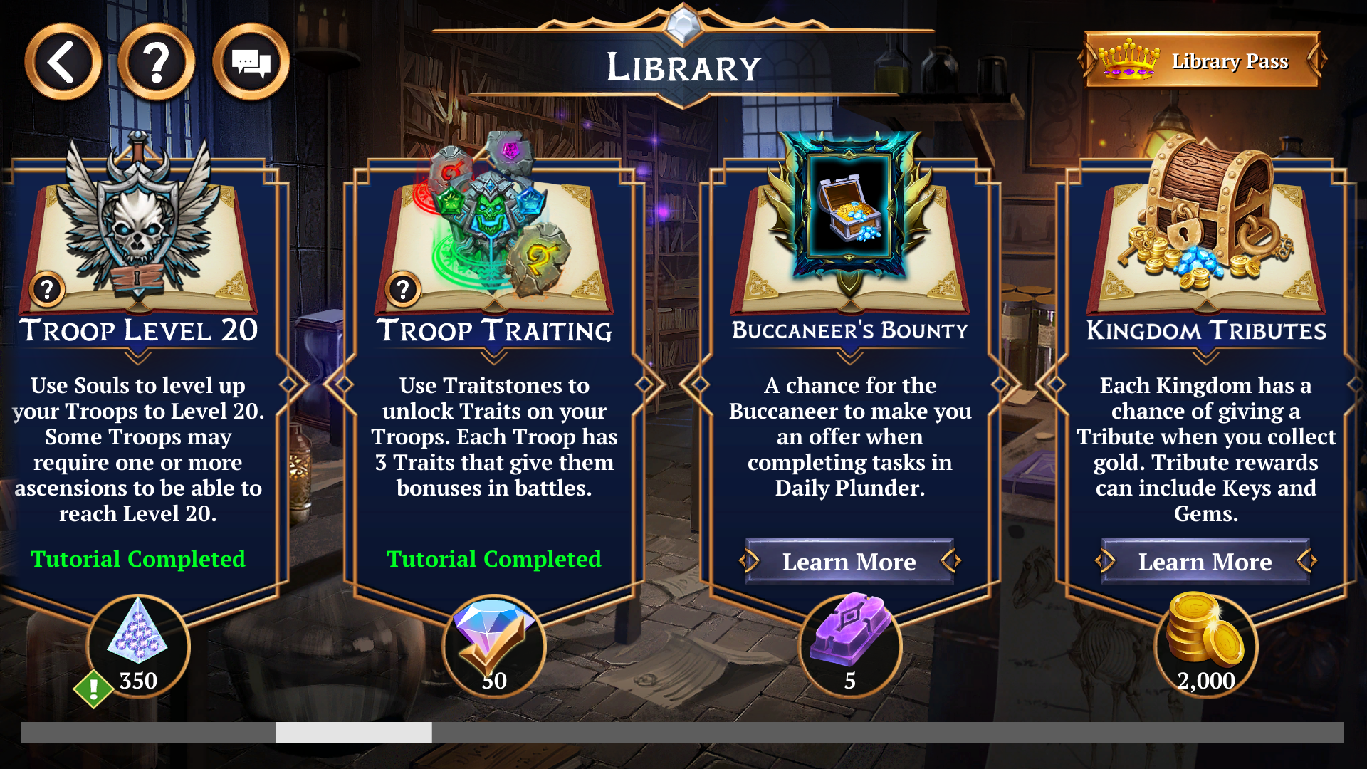 We have revised the Early Game unlock progression. The aim is to provide a better experience for new players. All early game “unlocks” and tutorials are now consolidated into a screen known as the “Library”