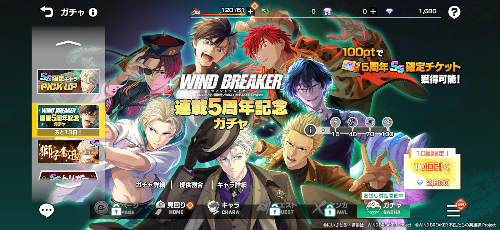 『WIND BREAKER』の連載5周年を記念して、特別なガチャを開催中!