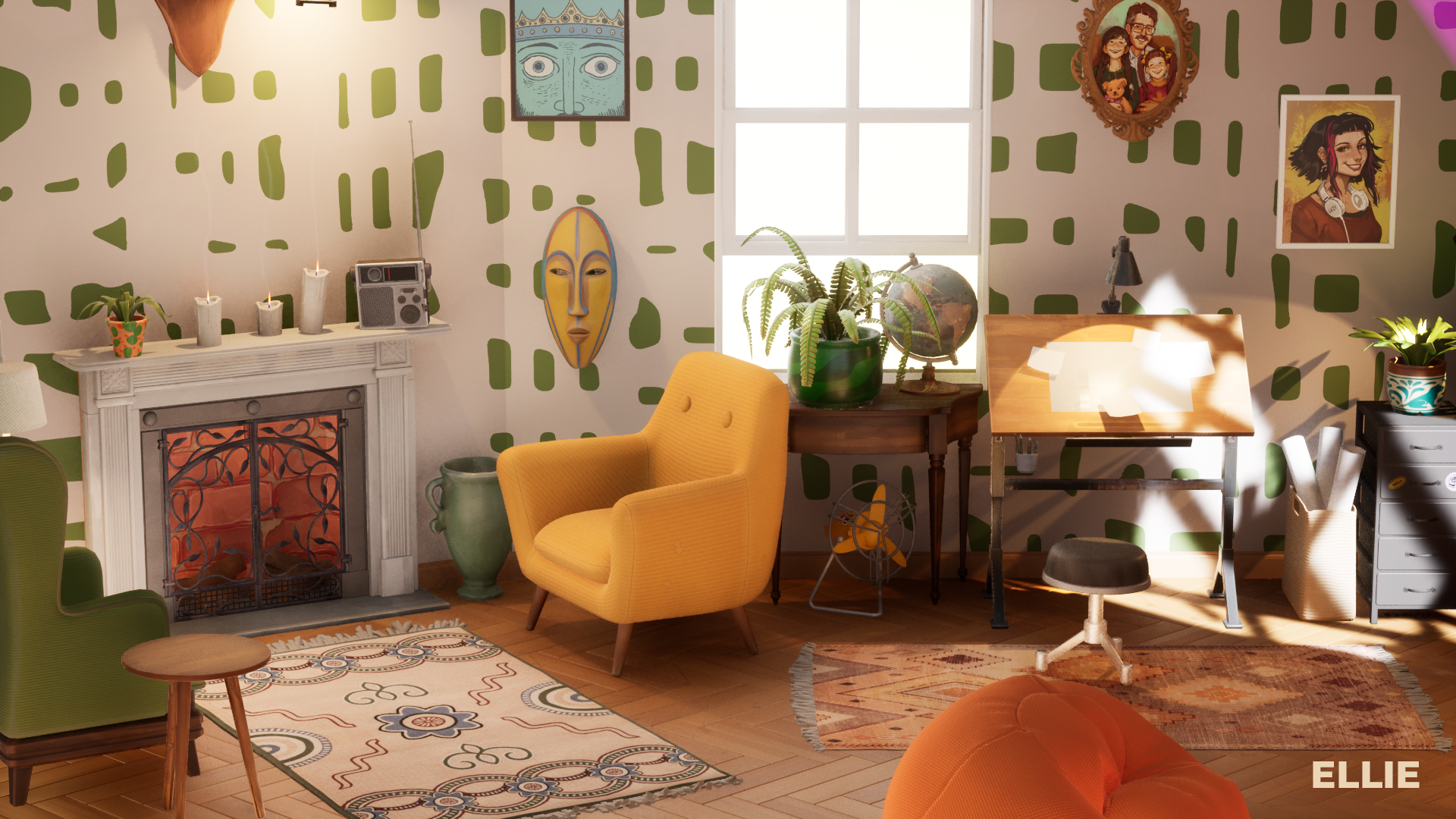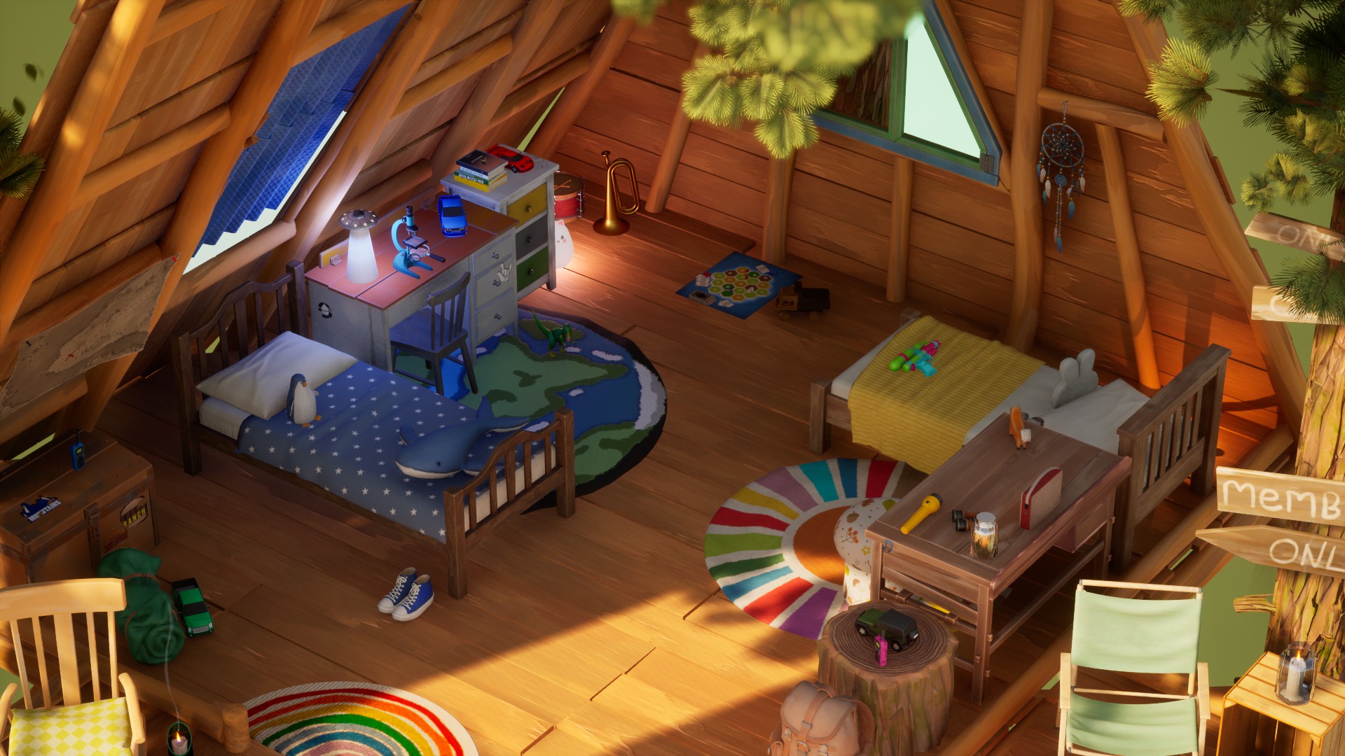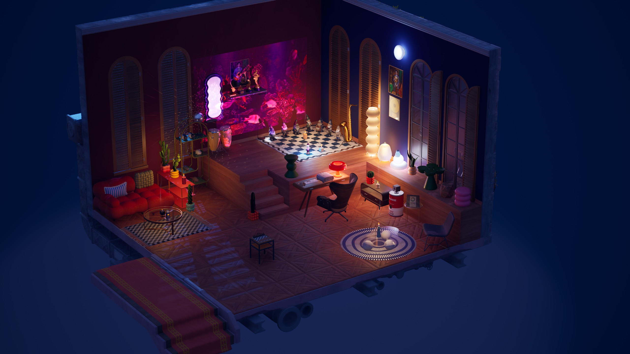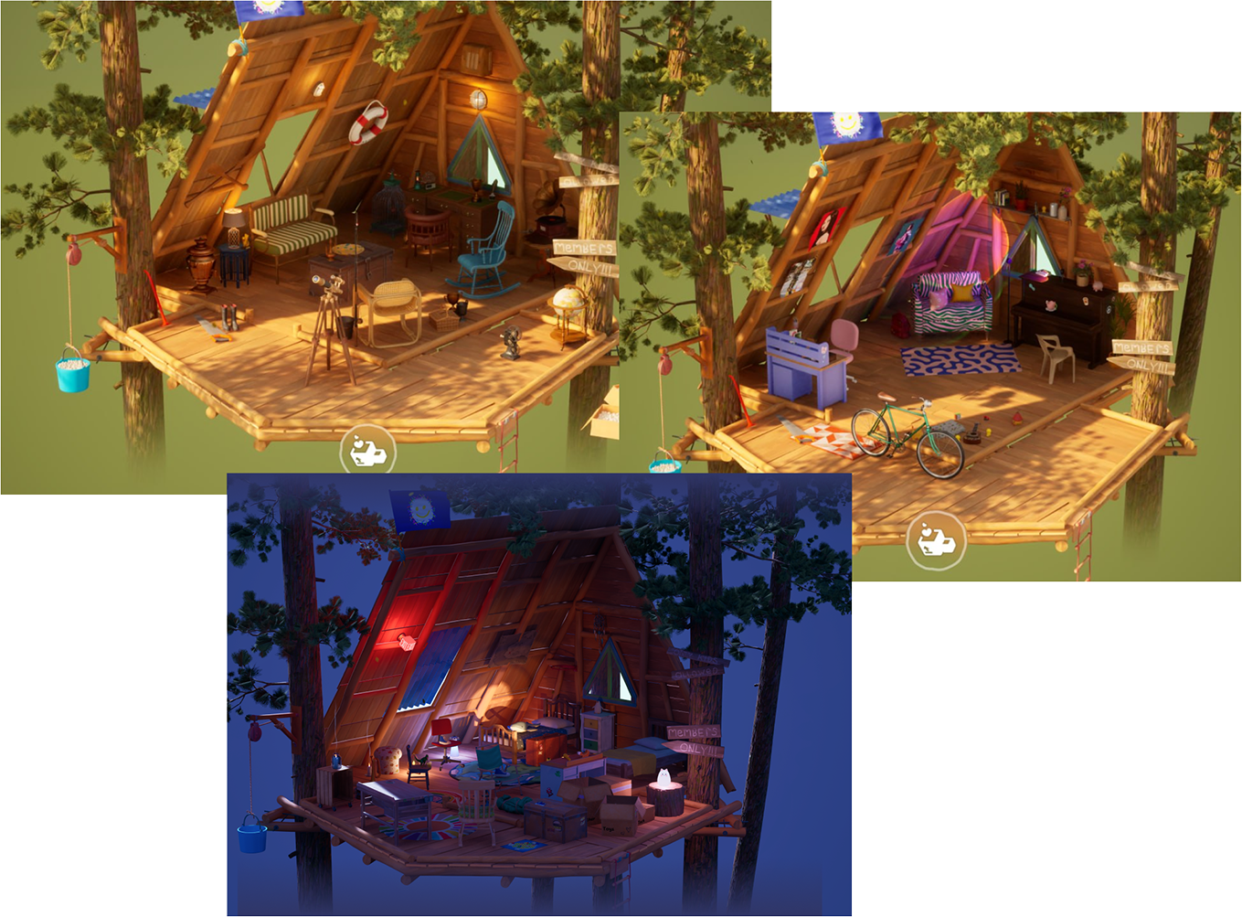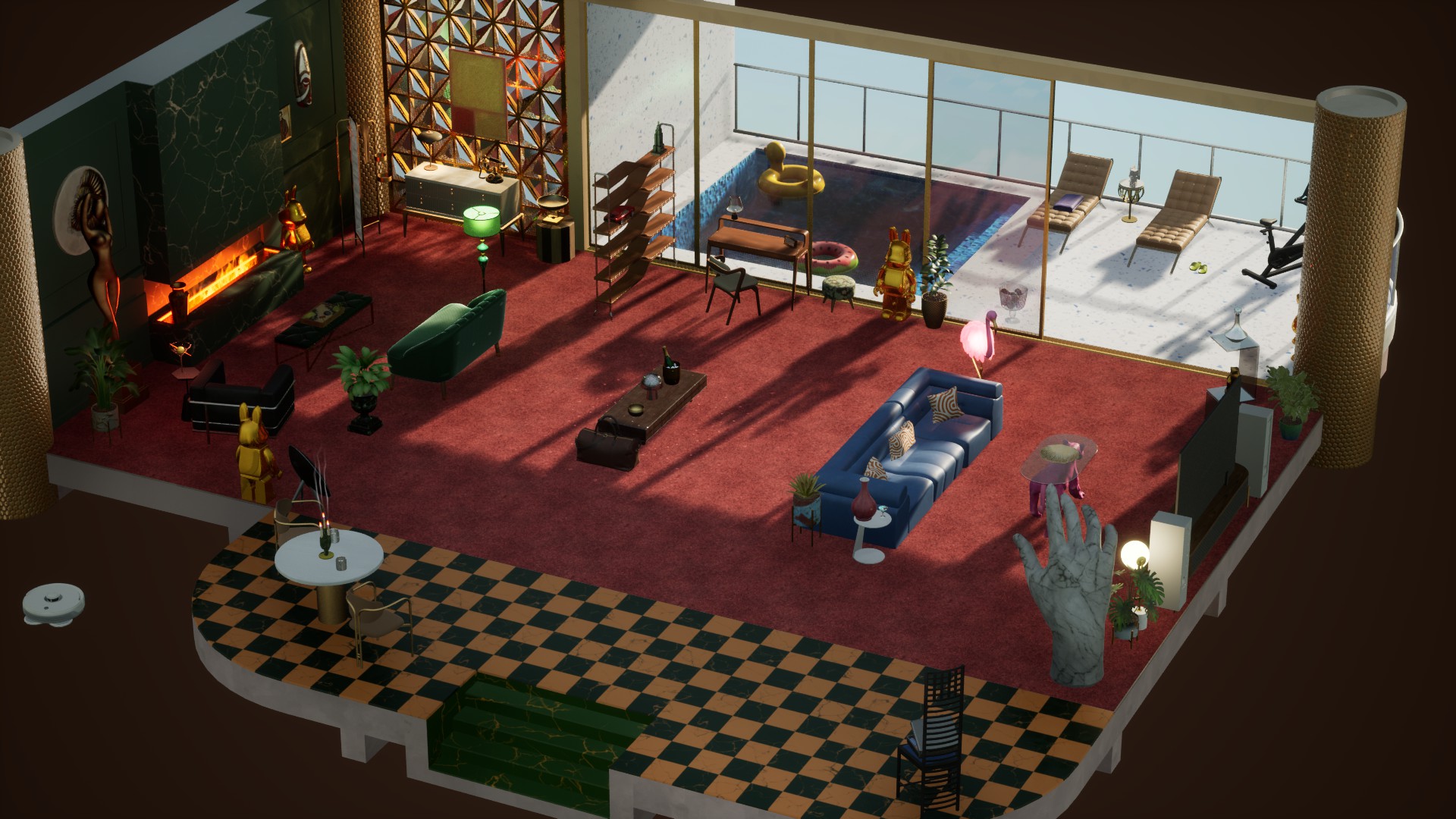 Screenshots from our internal testing that show various furniture sets and lighting settings!