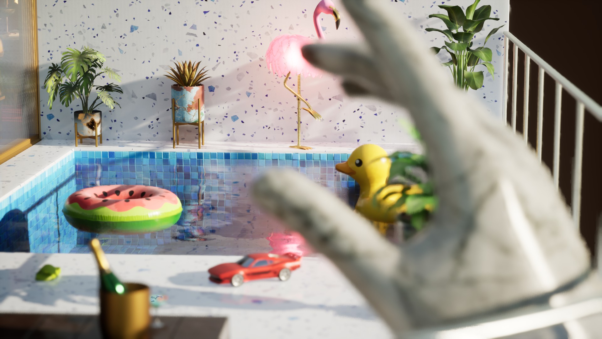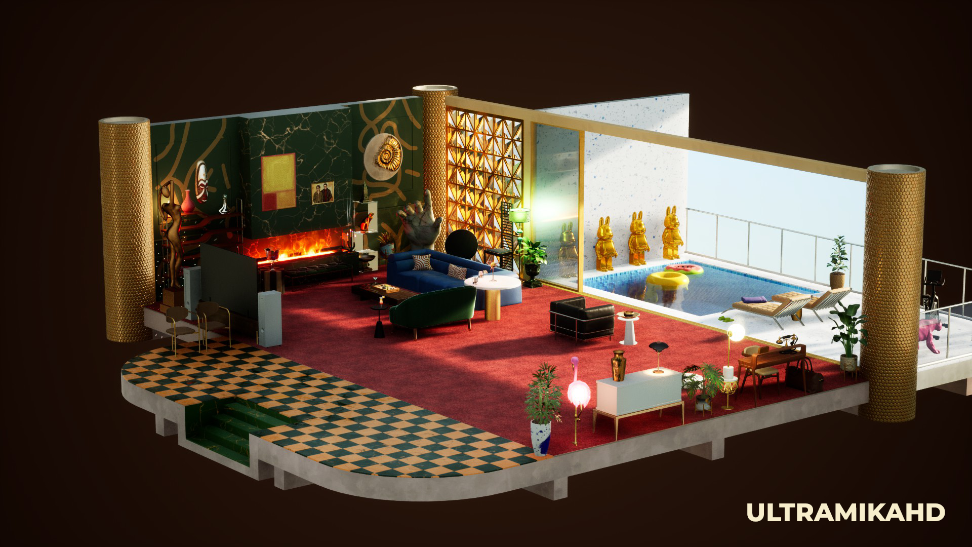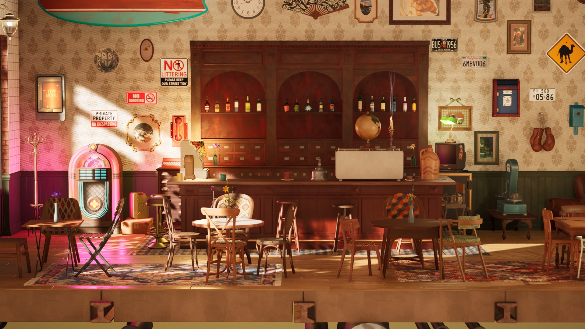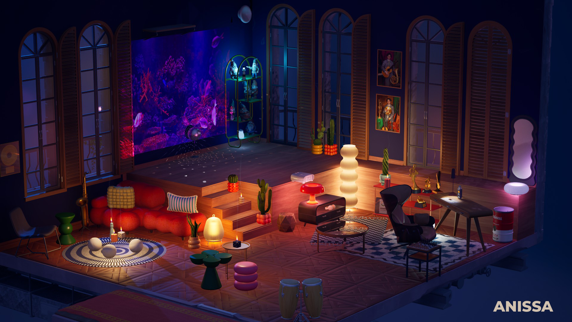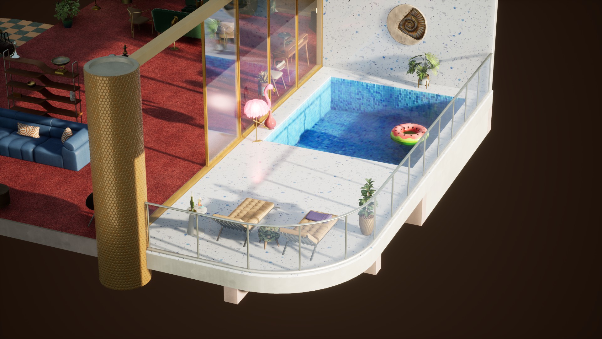 Screenshots from our internal testing that show various furniture sets and lighting settings!
