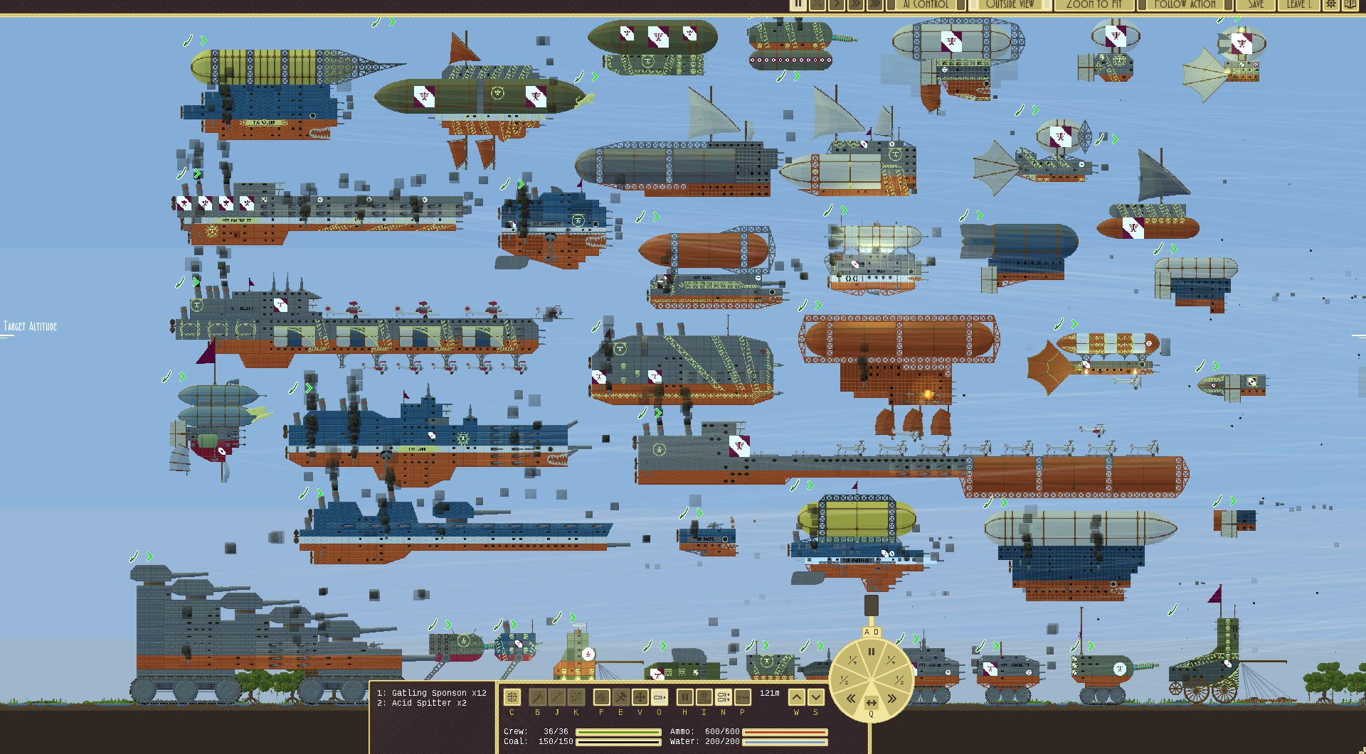 运用各种功能模块设计出蒸汽朋克像素风格的飞艇来征服天空吧!