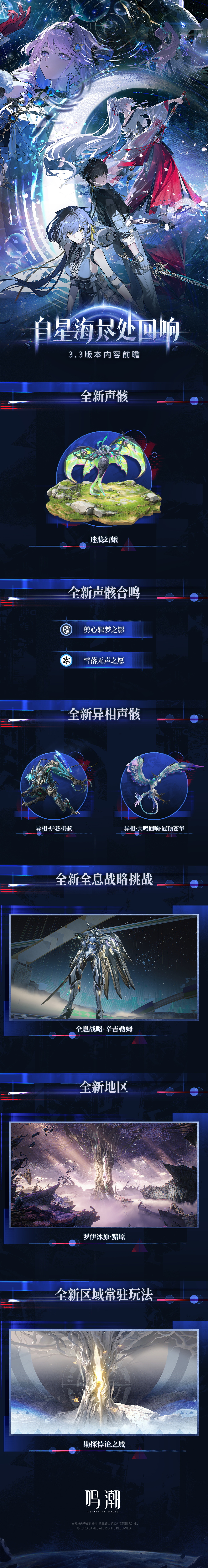 Wuthering Waves 是一款跨平台开放世界动作游戏,主打高自由度的动作战斗玩法与丰富多样的开放世界探索。而你,在这个世界苏醒的漂泊者,将在找回记忆、寻找自我身份的同时结识无数的共鸣者同伴,并和伙伴一起踏上改变这个世界的旅途。