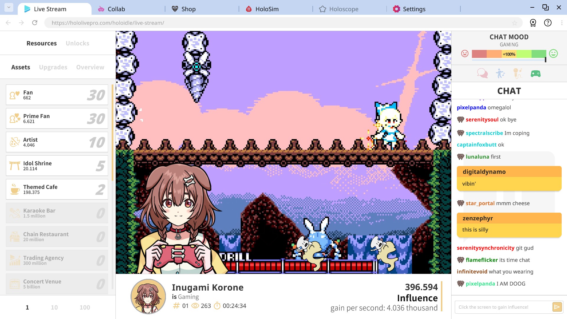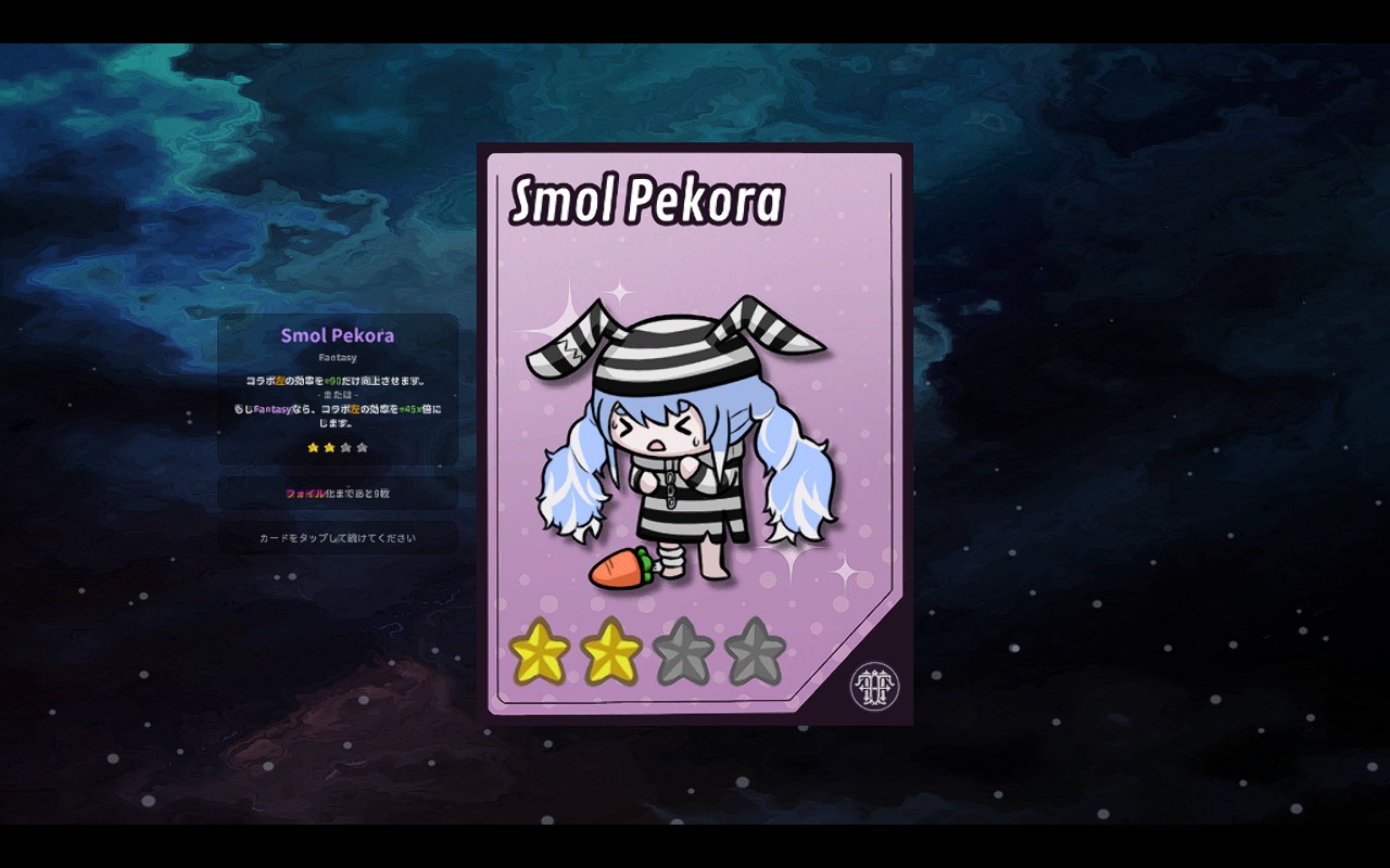 A relaxing Hololive idle game. Unlock upgrades, complete your card collection and take care of your idol to increase your influence!